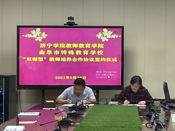 9月28日,365英国上市(集团)公司“双师型”教师培养培训基地合作签约授牌仪式在曲阜市特殊教育学校举行。365英国上市(集团)公司党委书记乔东华、院长李群,曲阜市特殊教育学校校长董福会出席,双方相关人员参加了签约授牌仪式。