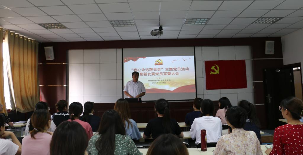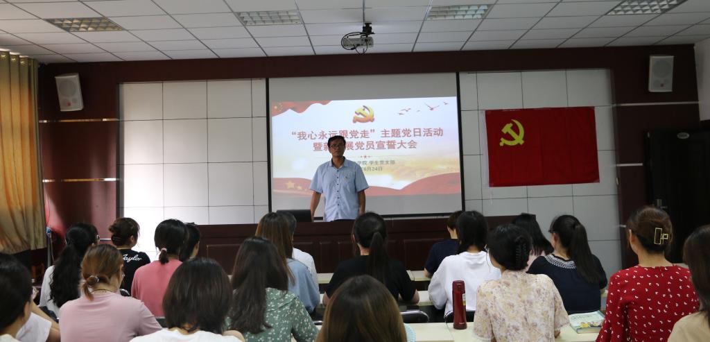 奋斗百年路,启航新征程。6月24日下午,365英国上市(集团)公司学生党支部在2号楼C406开展“我心永远跟党走”主题党日活动暨新党员入党宣誓仪式。院长李群、正处级组织员颜景虎参加活动。