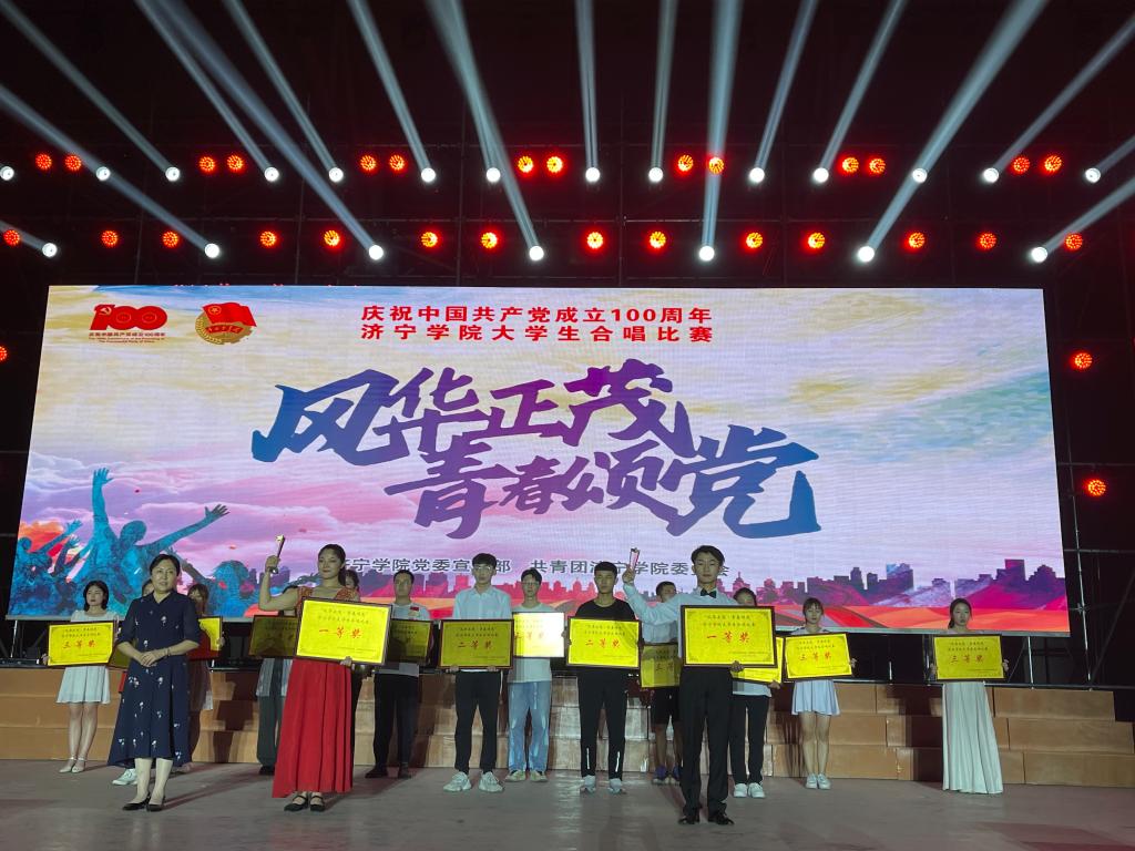 6月10日晚,由校党委宣传部、校团委主办,音乐学院、校学生会承办的“风华正茂·青春颂党”济宁学院大学生合唱比赛在西操场隆重举行。本次比赛全校共有15支参赛队伍,经过激烈角逐,我院在比赛中斩获一等奖。