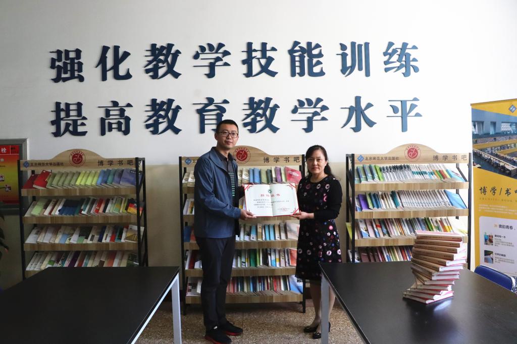 5月18日,北京师范大学出版社图书捐赠暨博学书吧启用仪式在文科楼二楼大厅举行,北京师范大学出版社山东总负责人翟墨、教育系党总支书记乔东华、主任李群及教育系部分教师参加了本次仪式。