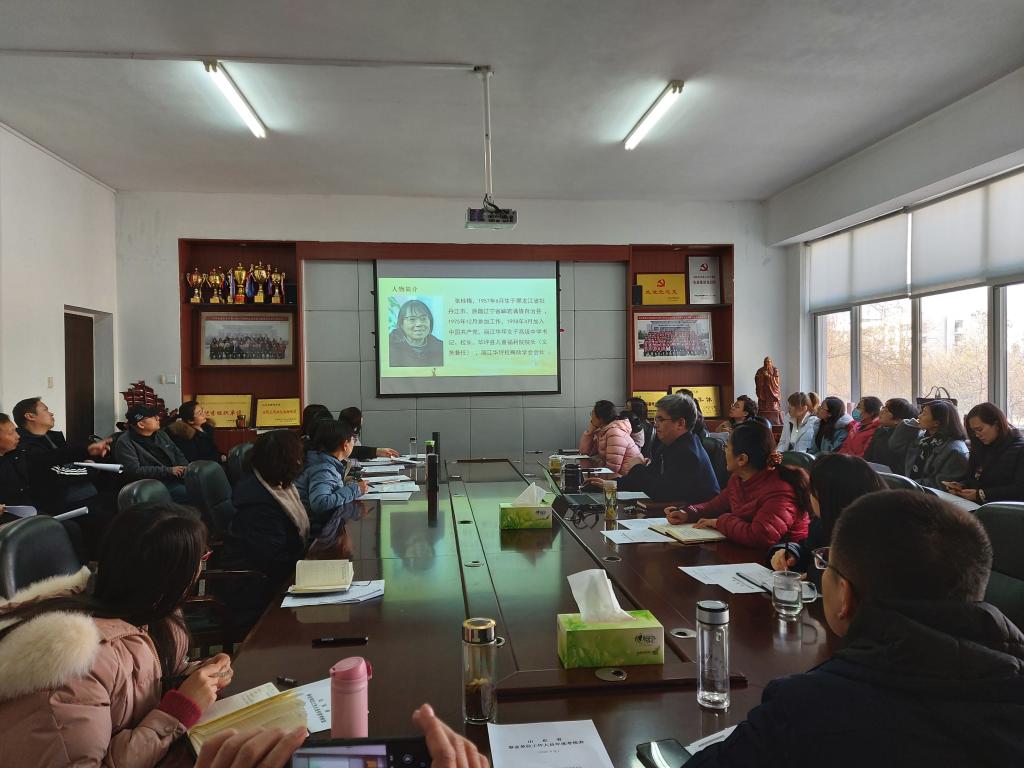 党总支书记乔东华号召大家要认真学习张桂梅同志信念坚定、对党忠诚的政治品格和爱岗敬业、无私奉献的高尚情操,牢记教书育人使命,爱岗敬业、甘于奉献、勇于担当,认真做好本职工作,争做新时代“四有”好老师