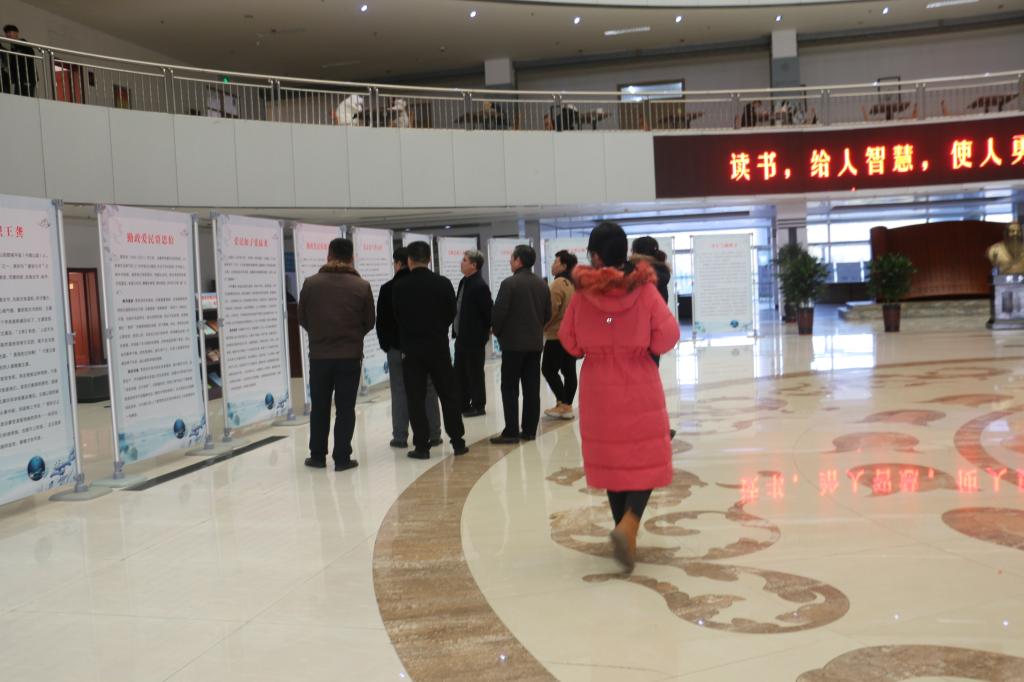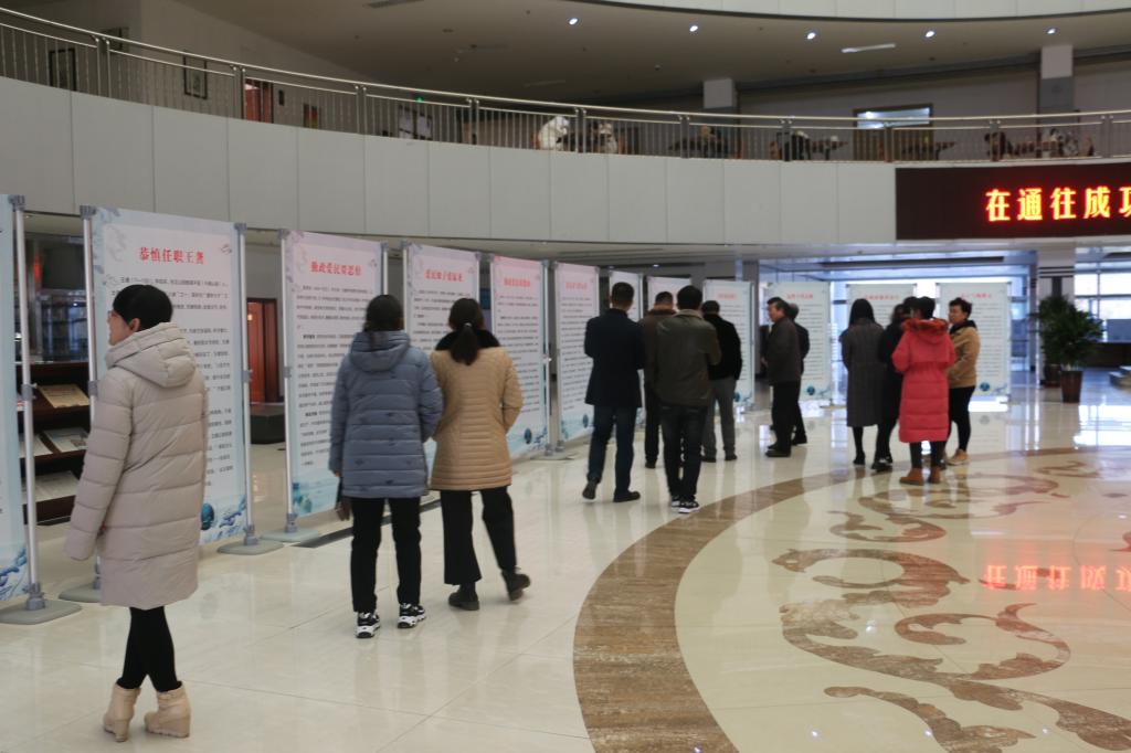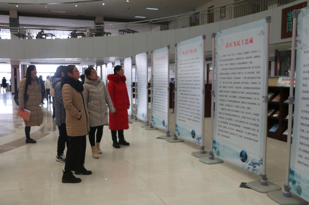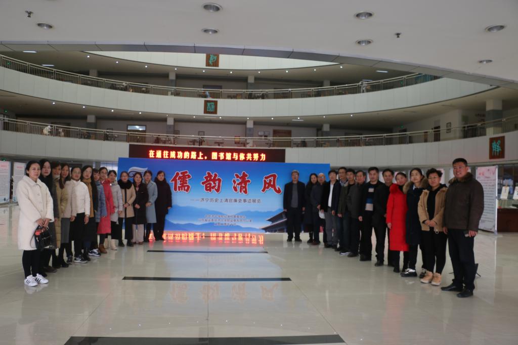 为进一步加强廉政文化建设,教育引导教职工自觉传承古代优秀廉政文化精神,筑牢“不想腐”的思想根基,12月3日下午教育系组织全体党员及副科级以上干部到图书馆二楼大厅参观“儒韵清风-济宁历史上清官廉吏事迹展览”。