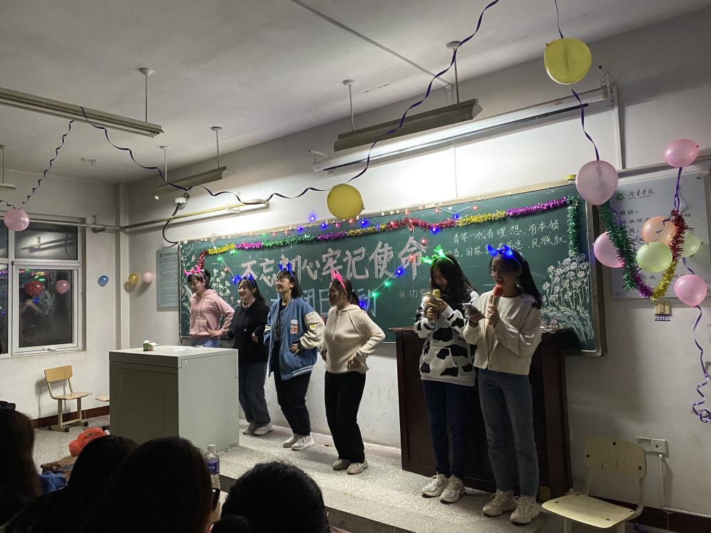 主题团日活动主要包括四个方面的内容:团旗下宣誓、集体学唱团歌、“不忘初心心自强,普写时代新华章”主题演讲、才艺展示。团旗下宣誓和学唱团歌,使广大团员真切感受到了团组织的力量,激发了他们刻苦学习、积极进取的斗志;主题演讲和才艺展示,加深了团员之间的了解,增强了团支部的凝聚力和向心力。