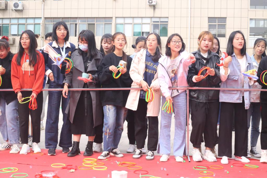 活动共分为两个环节,第一个环节是踢毽子和跳绳。同学们根据自己的兴趣和实际情况,自由选择踢毽子或者跳绳运动,满50个即获得第二环节资格。第二个环节是套圈游戏,获得本环节资格的同学可以免费得到10个圈,参与套圈游戏,套中的物品即为游戏奖励,留作纪念。