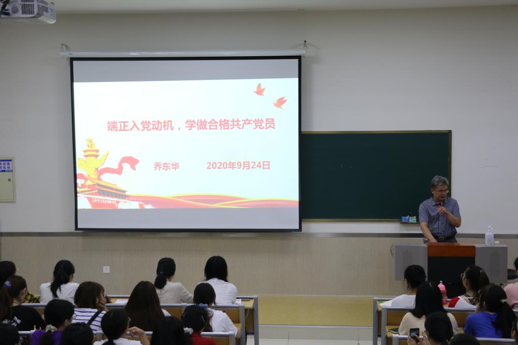 2020924日晚,教育系在2号楼B202开展了第39期入党积极分子普遍培训,教育系党总支书记乔东华为二百余位入党积极分子讲党课。