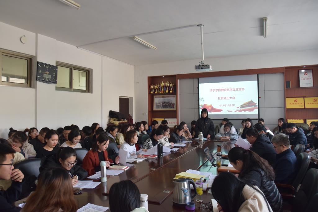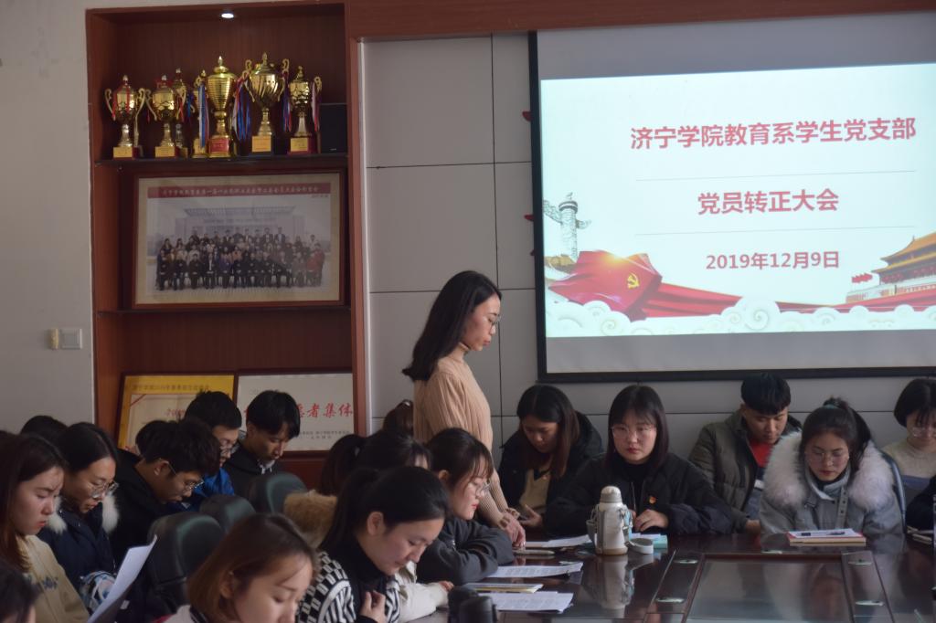 根据会议流程,首先,由申请转正的15名预备党员依次发言,对预备期一年的工作、生活、学习、思想等情况进行总结汇报。每位预备党员发言后,入党介绍人分别介绍了申请人在一年预备期的表现并表明自己的态度。在充分讨论的基础上,经依次无记名投票表决,15名同志均全票通过转为中共正式党员。最后,教育系党总支书记乔东华发表讲话。乔书记在讲话中对15名按期转正的同志表示了衷心的祝贺,对教育系学生党支部工作给予高度肯定。乔书记指出,每位党员都是一面旗帜,应该坚定理想信念,牢固树立“四个意识”、坚定“四个自信”、坚决做到“两个维护”,不忘初心,牢记使命,在今后的工作、学习、生活中,时时处处以党员的标准要求自己,发挥党员的先锋模范作用,加强学习,提高思想理论水平的道德修养,努力成为一名优秀的党员。