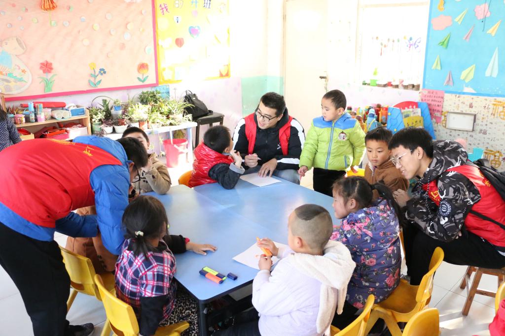 活动中,同学们通过简笔画、彩笔画、手工制作、硬笔书法、剪纸手工等活动与小朋友们进行教学互动。他们以极强的亲和力迅速融入到孩子们中间,与他们一起做游戏,手把手的指导孩子们进行手工制作,激发他们的想象力和创造力,热情、耐心的为孩子们答疑解惑,启发他们的思维。这种寓教于乐的方式深受小朋友的喜爱,一张张开心的笑脸也让同学们由衷的感到快乐和幸福。
