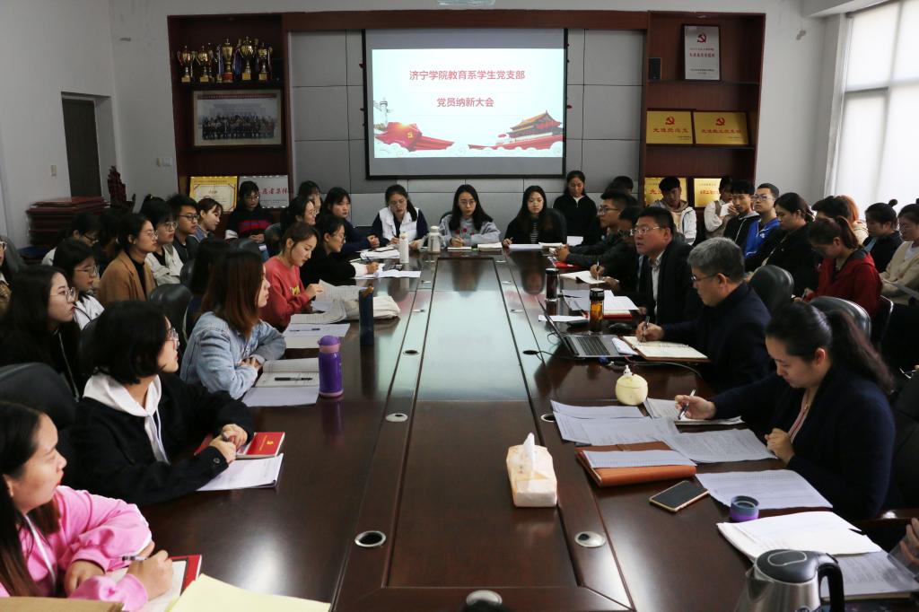 2019年11月1日上午,教育系学生党支部在系会议室召开学生党员纳新大会。教育系党总支书记乔东华,副书记刘勇列席会议,教育系学生团总支书记杜鹃主持,学生党员、预备党员及入党积极分子代表参加。