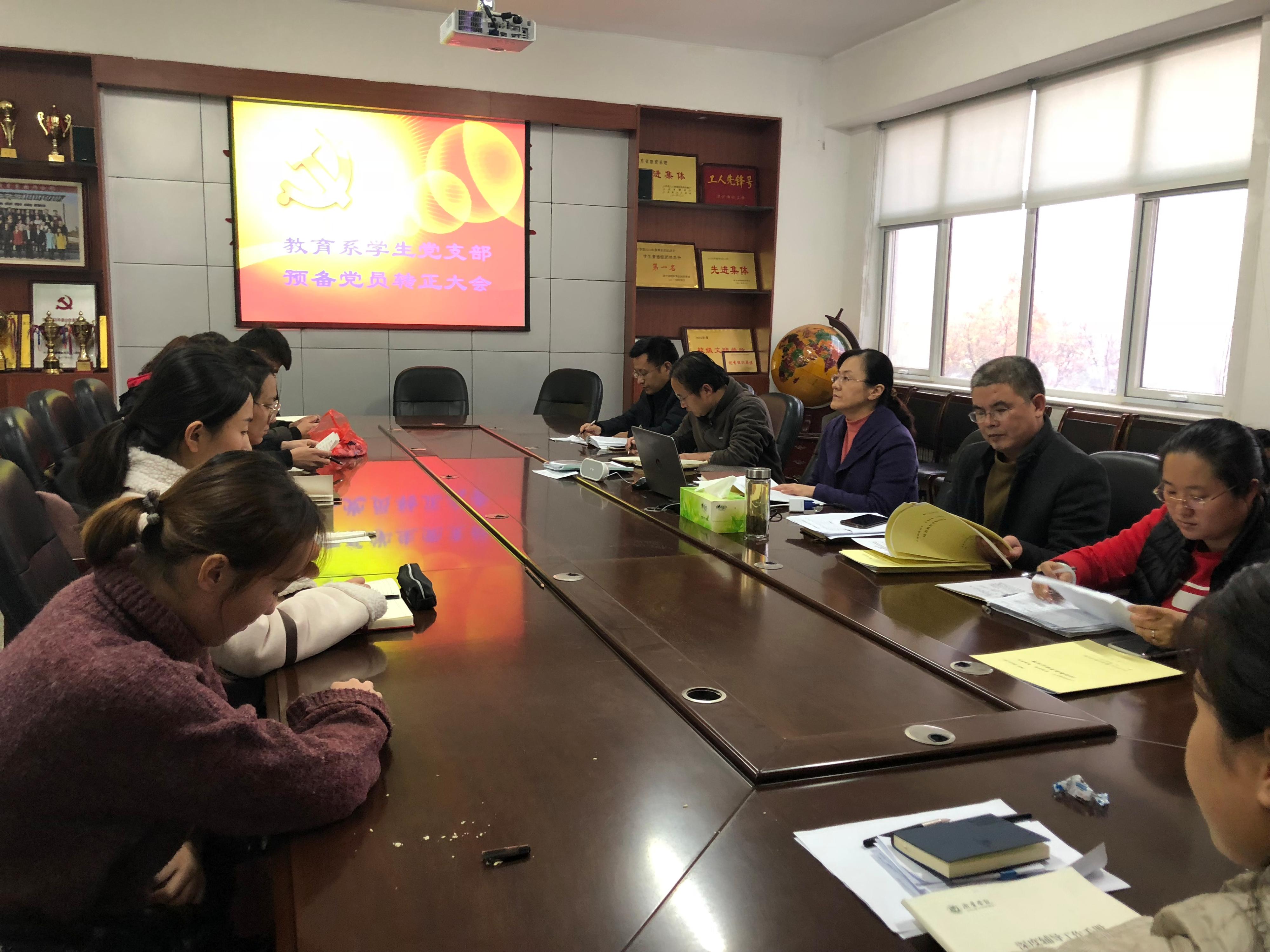 11月30日下午,教育系学生党支部在系会议室召开支部大会,讨论表决马永恒等12位预备党员转正事宜。党总支书记乔东华、副书记刘勇列席会议。学生党支部书记杜鹃主持。