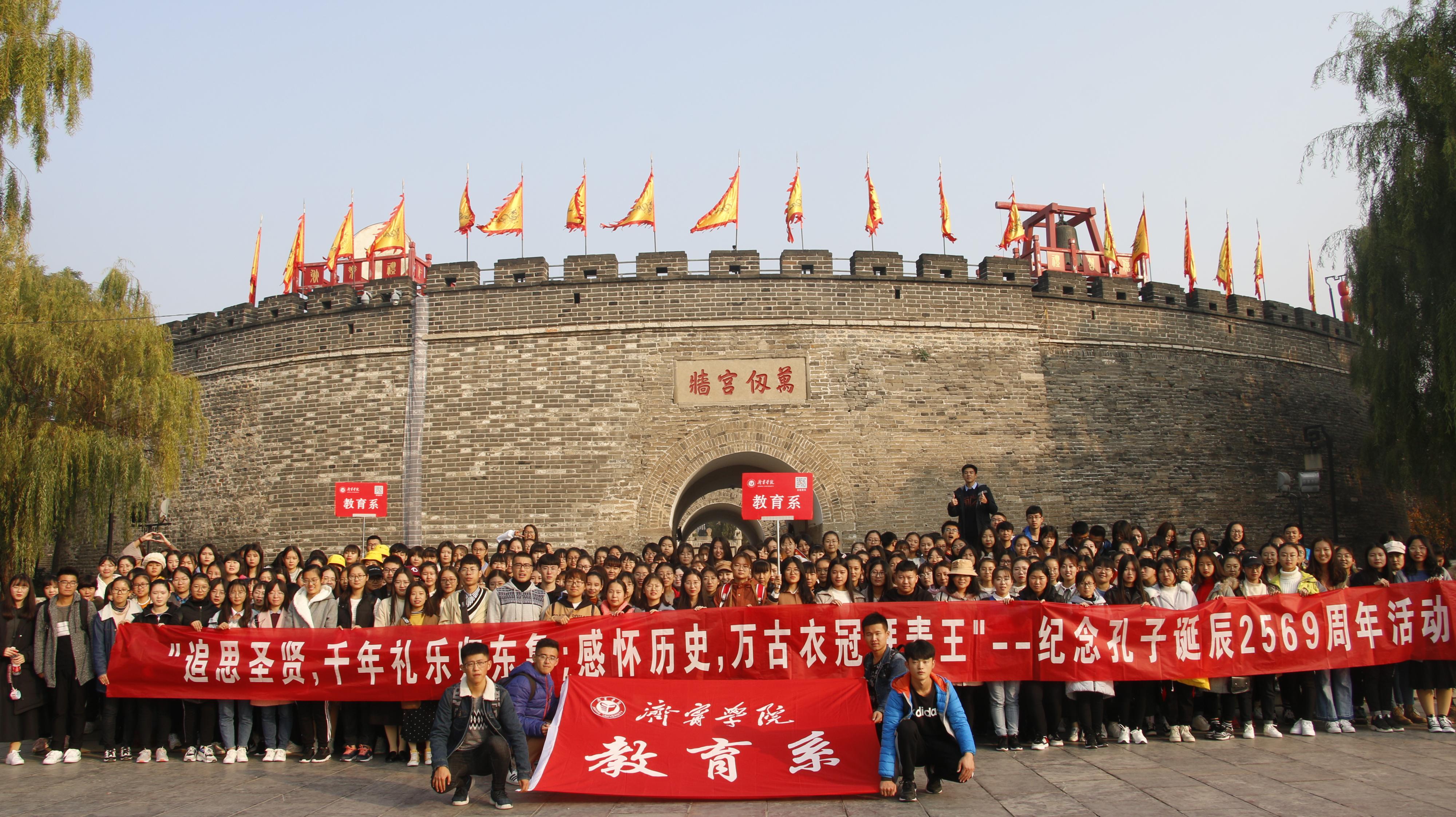 2018年11月10日,由教育系学生会发起并组织的“追思圣贤,千年礼乐归东鲁;感怀历史,万古衣冠拜素王--纪念孔子诞辰2569周年”活动顺利举行。2018级全体同学参观了三孔景区。