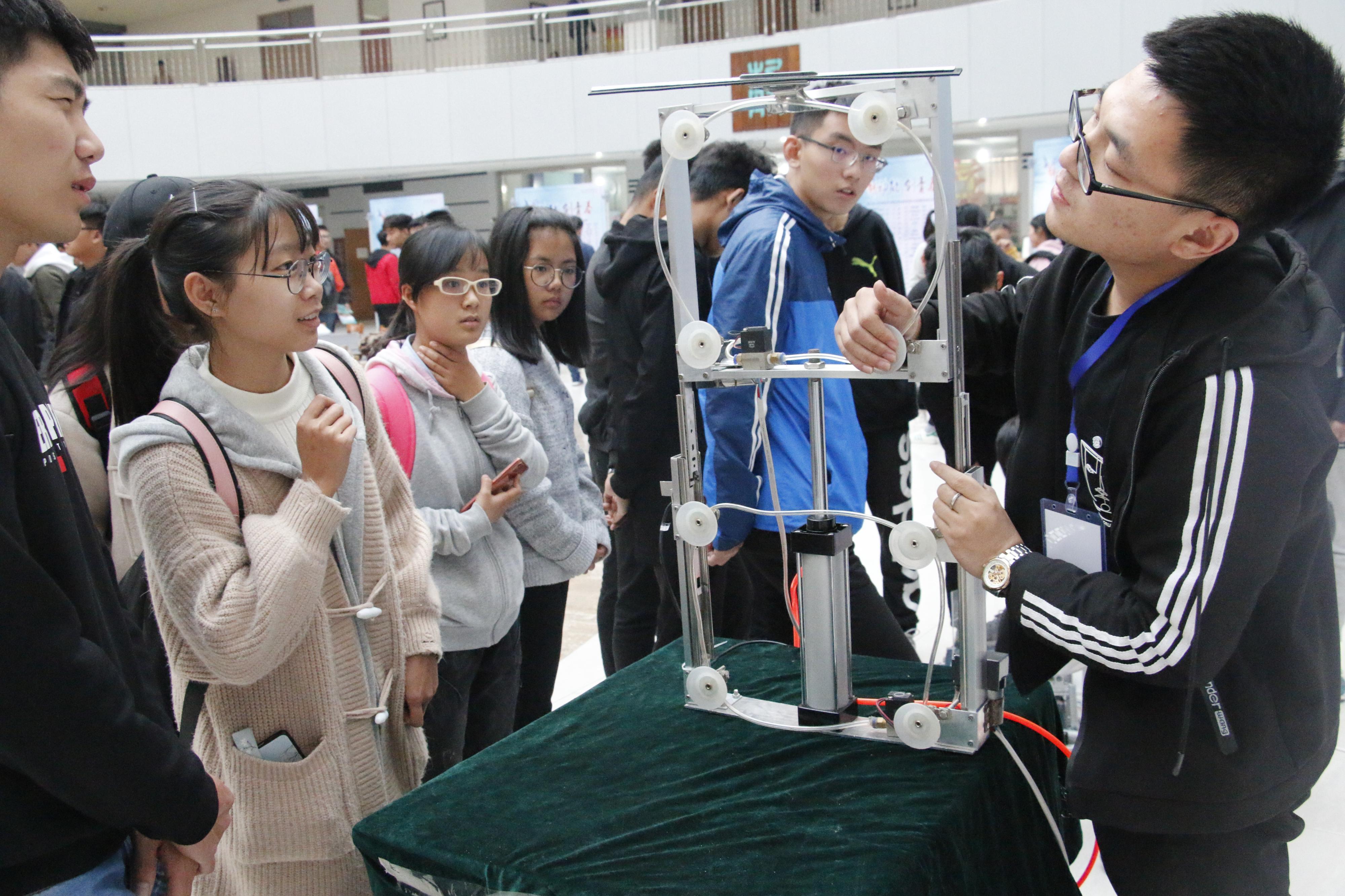 同学们有序地进入图书馆参观,现场有解说员为大家进行讲解,更有活动体验区供同学们体验。同学们热情满满,气氛高涨。让咖啡溶入书香的自动服务饮品机,可自动化作业、解决人力资源浪费的餐具回收车等项目都体现了同学们对创新创业的理解。展台上摆满了同学们获得的各项证书,一张张证书传递的更是同学们对创新创业的坚定信念。