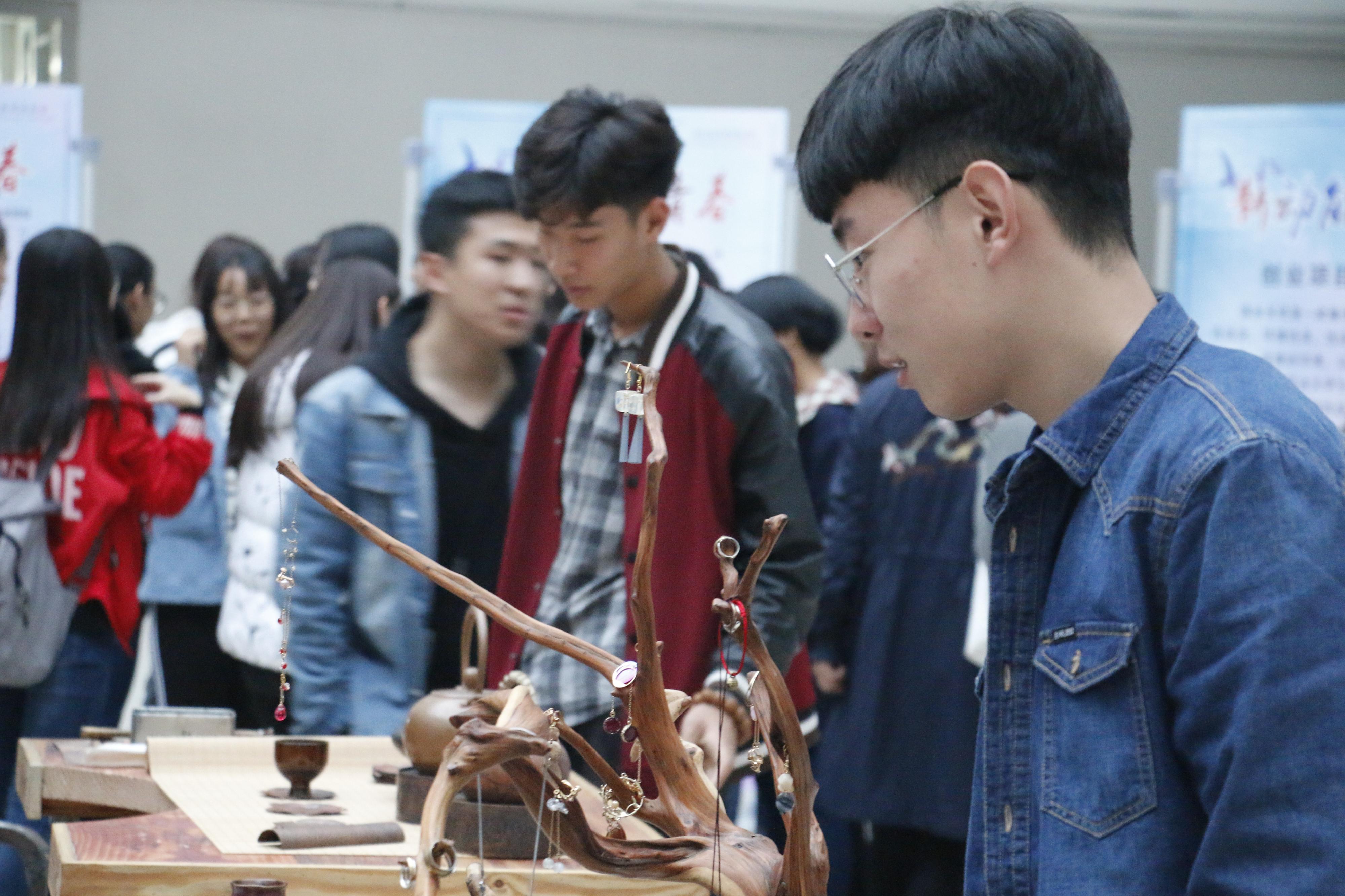 2018年11月1日至11月6日下午,教育系组织2018级同学有序参观“庆祝改革开放四十周年暨‘新动能、创青春’大学生创新创业成果展”。本次作品展在图书馆二楼开展。