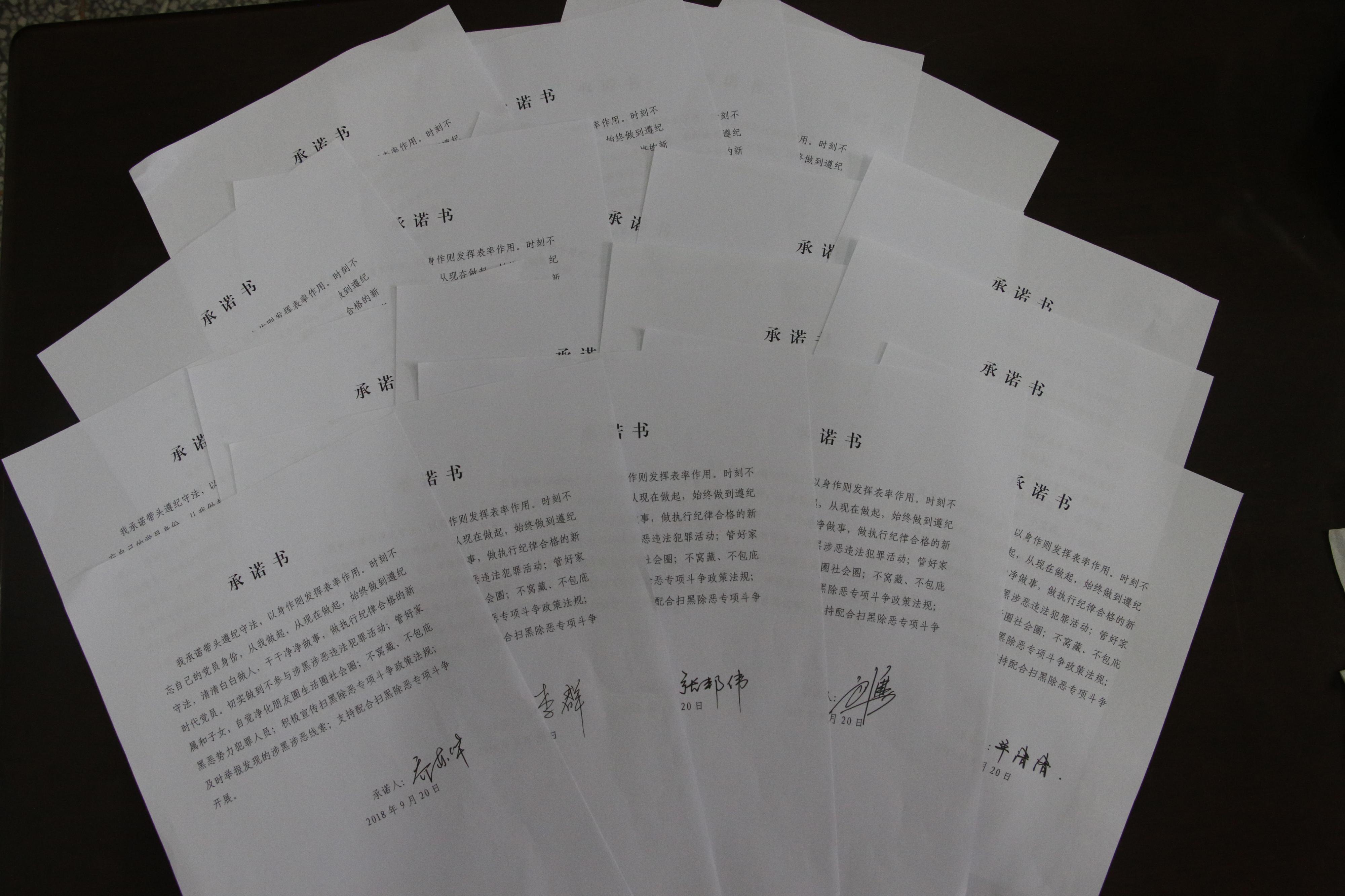 随后,全体党员逐一签订了“扫黑除恶、勇当先锋”《承诺书》。刘勇书记要求全体党员要切实履行承诺,积极宣传扫黑除恶专项斗争政策法规,不参与涉黑涉恶违法犯罪活动,不窝藏、不包庇黑恶势力犯罪人员,及时举报发现的涉黑涉恶线索,积极支持配合扫黑除恶专项斗争开展。同时,要注意管好家属和子女,自觉净化朋友圈生活圈社会圈。