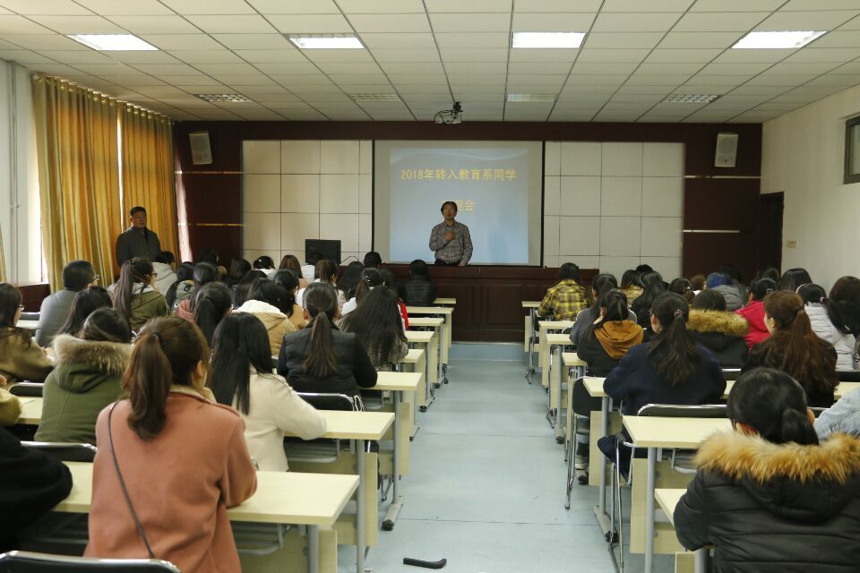 2018年3月16日下午,转入教育系学生见面会在文科楼C406成功举行。教育系副主任张邦伟、党总支副书记刘勇、辅导员宋汝国出席见面会,会议由徐艳艳老师主持。