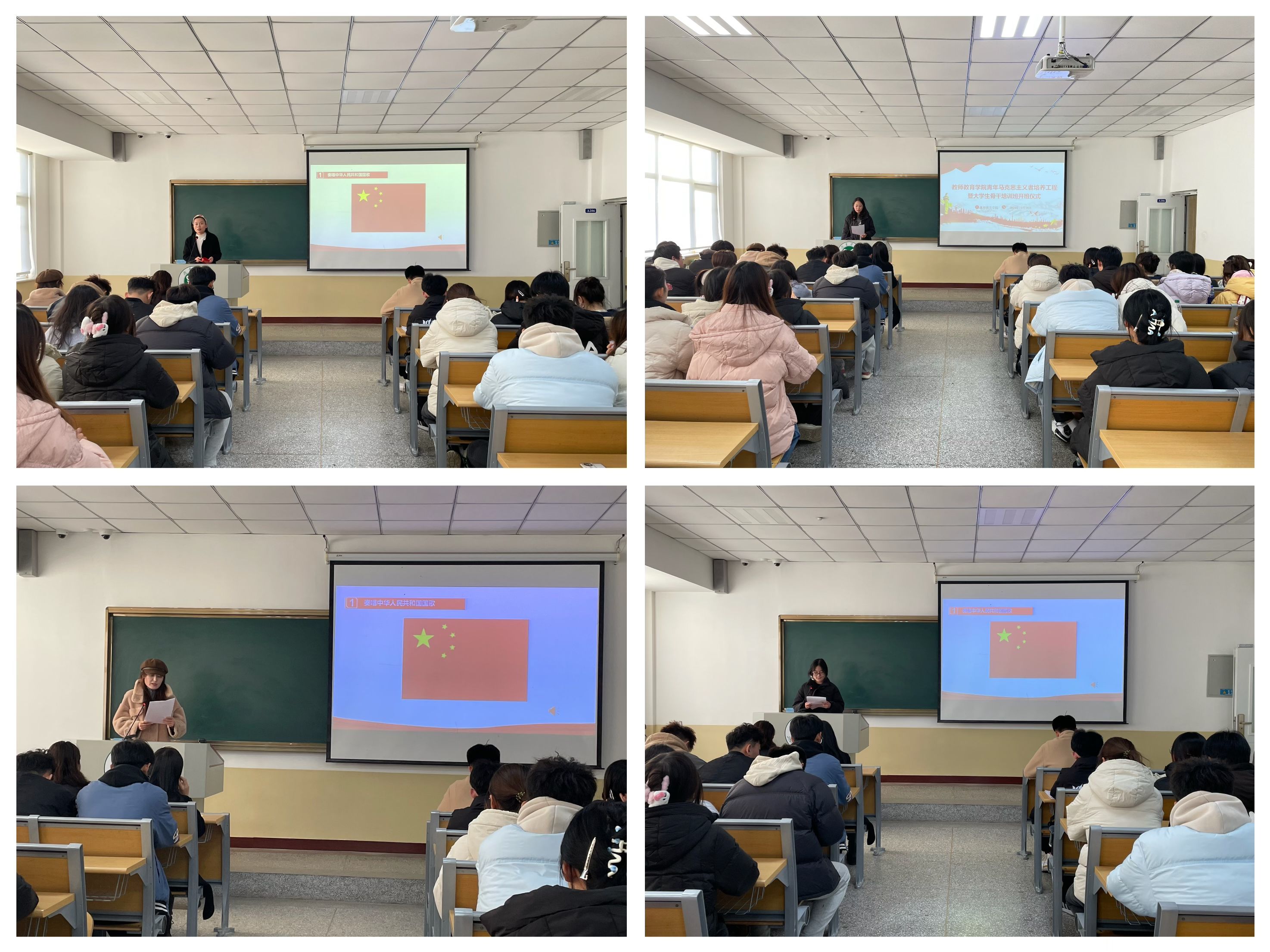 开班仪式在庄严的国歌声中拉开序幕。刘勇在动员讲话中指出,“青马工程”是引领青年思想的有效途径,是确保党的事业兴旺发达、后继有人的一项政治工程。他希望全体学员坚定理想信念,要做“先行者”,在接受党的科学理论武装上先行,在勇担时代重任上先行;要做 “引领者”,积极锤炼政治品格,充分发挥学生干部“点亮一盏灯、照亮一大片”的模范带头作用;要做 “践行者”,积极践行社会主义核心价值观,做知责于心、担责于身、履责于行的实践者。随后,徐艳艳宣读了培训要求与课程安排,希望全体成员通过参加培训,能够达到思想淬炼、政治历练、实践锻炼的目标。学员们重温了入团誓词,金姝汝代表全体学员表示会珍惜学习时光,争做理想远大、信念坚定、开拓进取、与时俱进的青年马克思主义者。