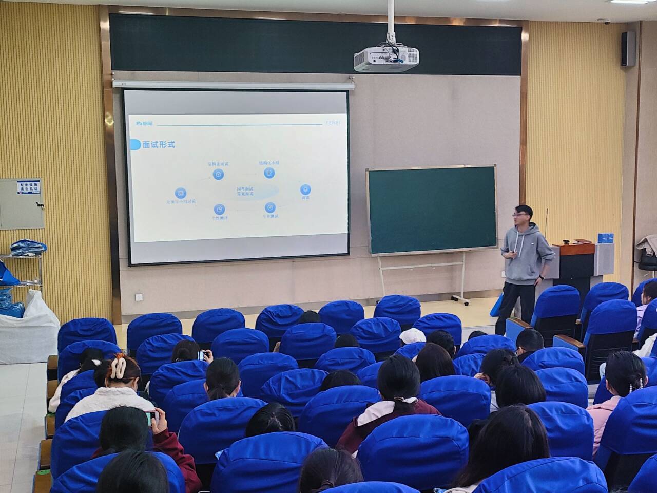 会上,宣讲代表通过公务员、事业编、基层就业等就业类型,分别从考试时间、招考人数、报考条件、考试内容等方面向同学们进行了深入指导,并就教师招聘进行了重点讲解;在互动环节,同学们积极提问,与宣讲代表进行深入的交流和探讨,同学们纷纷表示,获益匪浅。