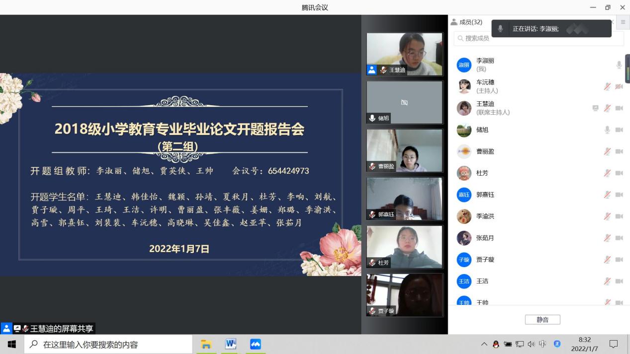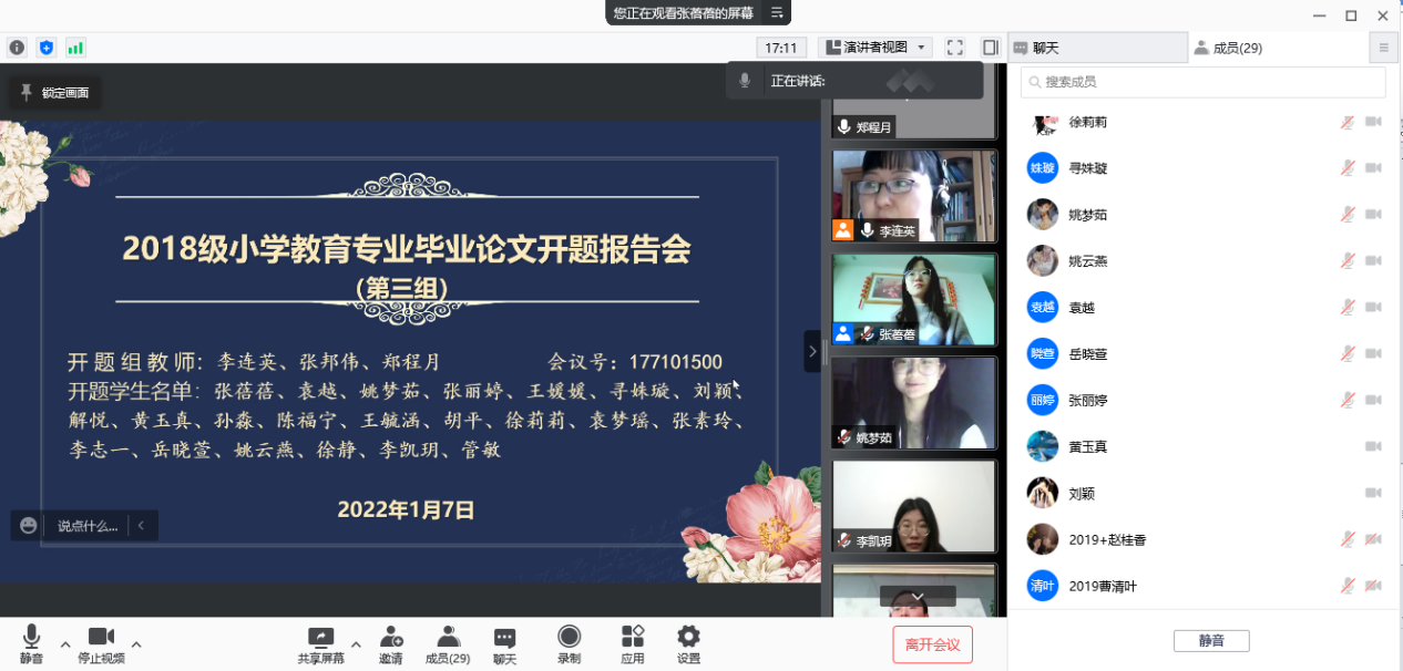 2022年1月7日,365英国上市(集团)公司小学教育专业2022届本科毕业生论文开题报告会顺利完成。2018级小学教育专业本科学生及2019级小学教育专业部分学生参加了此次线上开题报告会。教育学教研室11名专业教师担任本次开题指导教师。