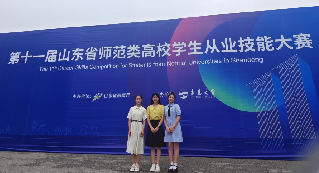 第十一届山东省师范类高校学生从业技能大赛省级决赛于7月19至23日在青岛大学举行,我院共3名学生参赛,取得两个一等奖,一个二等奖的优异成绩,其中齐文佩获得小学数学组一等奖第一名,崔文华获得学前组一等奖,刘成龙获得小学语文组二等奖。李淑丽老师和张凤老师荣获优秀辅导教师。