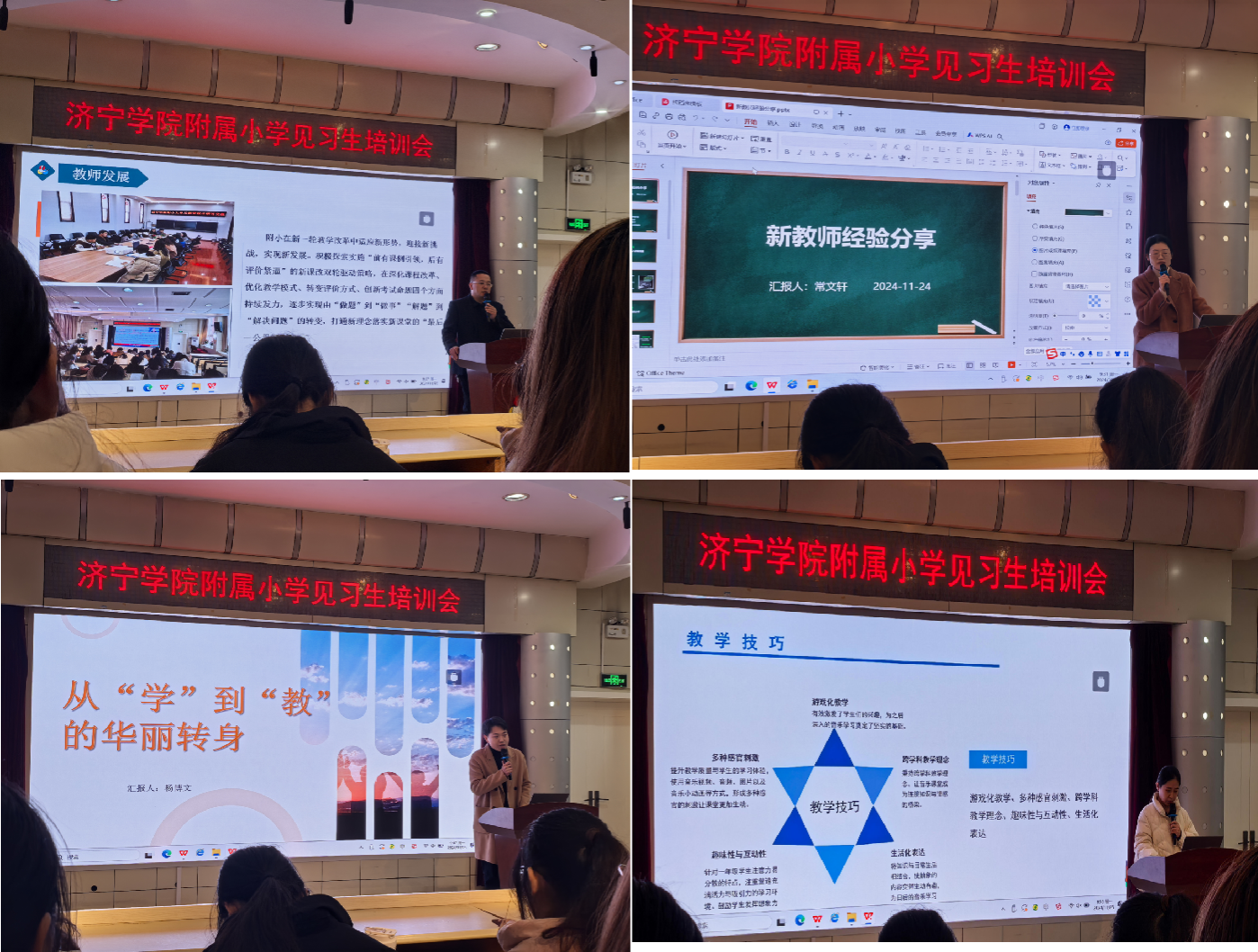 本次见习活动在济宁学院附属小学、济宁学院第二附属小学及曲阜市春秋小学三所实践教学基地开展,属于”驻班跟师”教育见习方案中的第二阶段,主要内容为驻班观摩课堂教学,同时参与班级管理、协助班队活动、践行师德体验等。课堂教学观摩涵盖小学1-5年级语文、数学、科学、道德与法治等多个学科,同学们进入班级,深入课堂,认真观摩,虚心求教,见证了一名小学教师从课前准备、课堂教学到课后反思的全过程。同时积极与见习学校的指导老师沟通交流,并汇报学习心得,指导老师对学生的表现给予了高度评价,认为他们展现出良好的专业素养、沟通能力和实践能力,对小学的教育教学环境有比较强的适应能力。