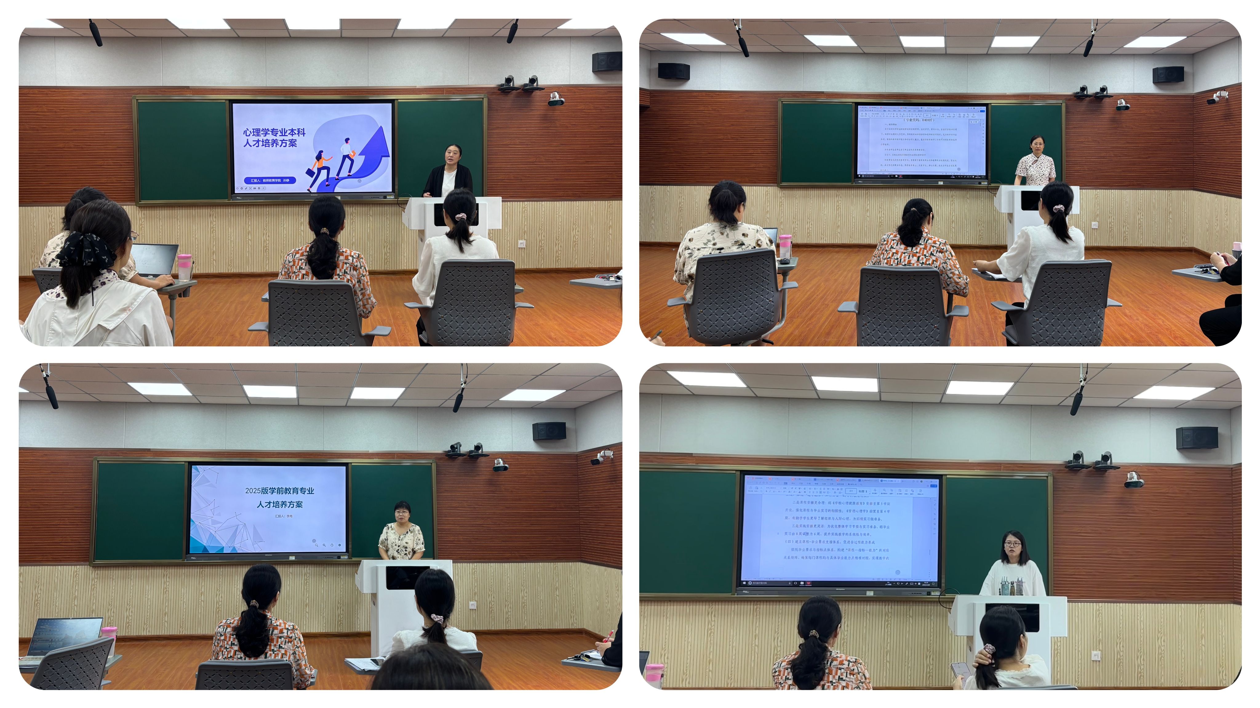 随后,心理学、小学教育、学前教育等专业负责人依次汇报修订情况。各专业围绕修订依据、修订过程、核心变化等方面展开说明:一是修订依据,对标教育部本科专业类教学质量国家标准、师范类专业认证标准及行业发展需求,确保各专业人才培养的基本规格与质量要求符合国家规定。二是修订过程,通过行业调研、用人单位访谈、学生座谈、专家论证等方式开展调研,广泛吸纳多方意见,确保方案可行落地。三是核心变化,优化课程体系结构,增设符合时代发展需要、行业发展需要、具有地方文化特色的课程,体现方案的与时俱进。