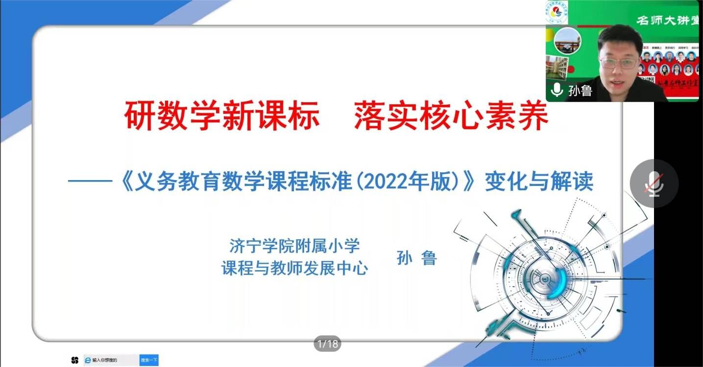 王文郁和孙鲁老师分别以《读懂用好统编教材 促进语文核心素养形成》和《研数学新课标 落实核心素养——<义务教育数学课程标准(2022年版)>变化与解读》为主题进行专题讲座。王文郁老师首先漫谈“一个人 一道题 一段路”,拉近了与学生之间的距离,接着图文并茂地展示了2022版义务教育语文课程标准的新变化,部编本教材的结构体例和选文编排,在读懂用好统编教材、转变教学观念方面给同学们提出了学习建议。孙鲁老师围绕“研数学新课标,落实核心素养”,从课程性质理念、课标主要变化和落实核心素养三个方面对《义务教育数学课程标准(2022年版)》进行了全面解读,向学生介绍了名师工作室的丰富多彩的实践活动。