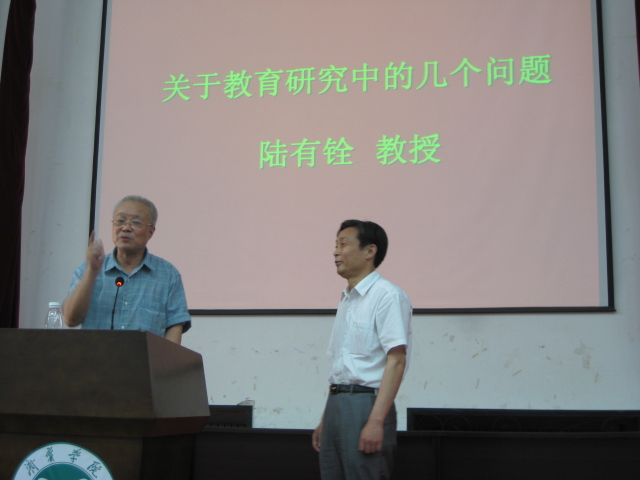 5月27—28日,受科研处和教育系邀请,华东师范大学终身教授、博士生导师、中国教育学会教育哲学专业委员会主任陆有铨来院讲学,罗家英院长、朱松涛副院长分别会见了陆有铨教授。陆有铨主要致力于西方教育哲学思潮的研究,在国内较早地翻译介绍了皮亚杰、加涅、赫钦斯等人的教育著作和教育思想,是当代著名教育哲学家。