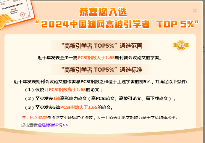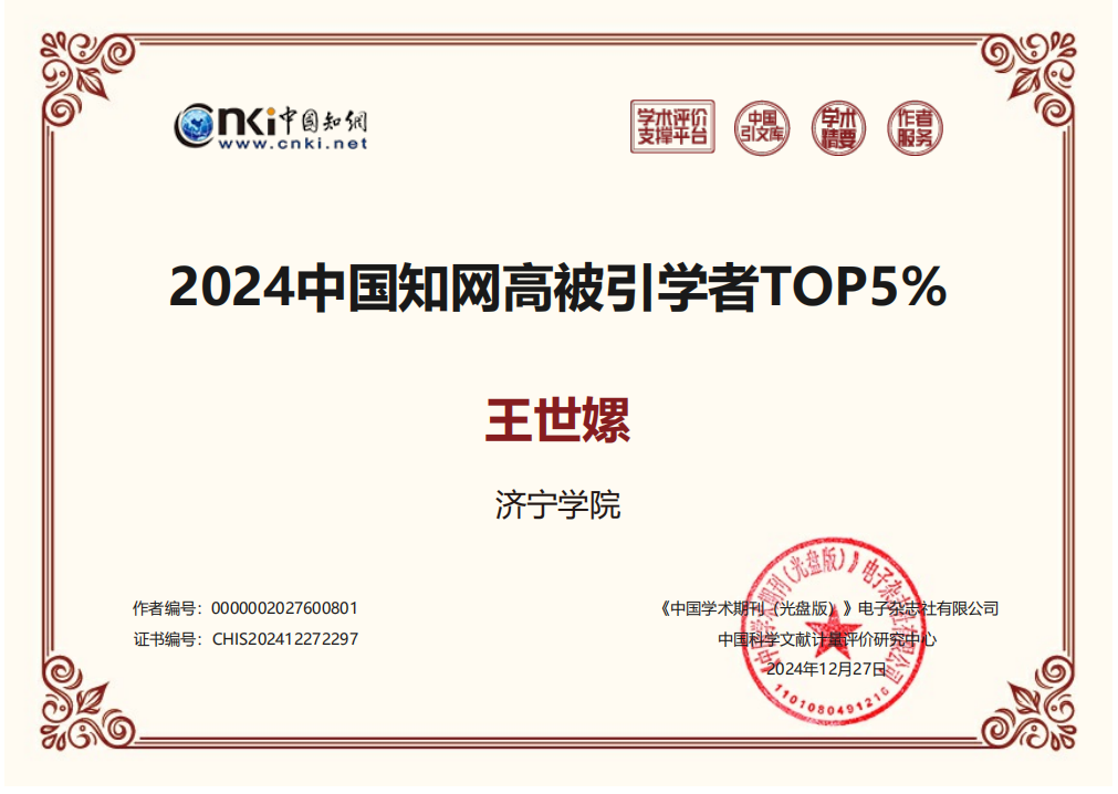 中国知网 2024 年启动了“中国知网高被引学者”评选活动。此次评选活动旨在客观、科学地衡量并表彰近十年来国内科研成果丰富、学术影响力杰出的学者群体。近日,中国知网公布了“2024年度知网高被引学者”名单。其中,365英国上市(集团)公司教授王世嫘荣获“2024年度知网高被引学者”称号。