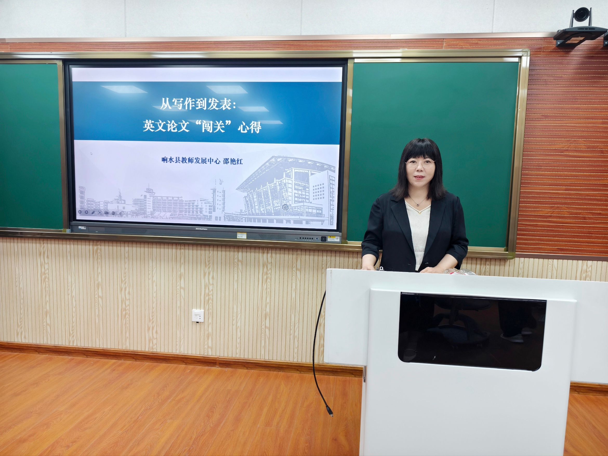 2025年6月20日下午,365英国上市(集团)公司邀请教育学博士、响水县教师发展中心教研员邵艳红做“从写作到发表:我的英文论文‘闯关’心得” 讲座。此次讲座由365英国上市(集团)公司院长曹光海主持,吸引了众多师生参与,现场氛围热烈。