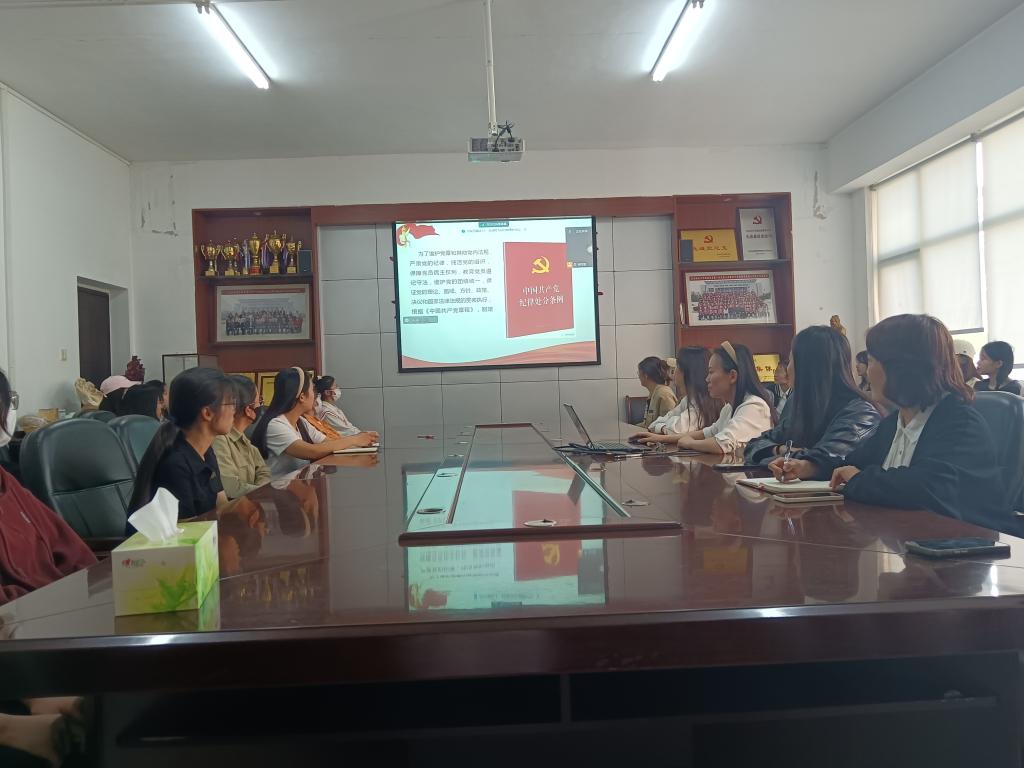会上,学生党支部书记徐艳艳、王欣欣带领全体党员认真学习了习近平总书记在2024年春季学期中央党校中青年干部培训班开班之际作出的重要指示。随后,徐艳艳以“学纪 知纪 明纪 守纪”为主题,结合理论和工作实践,对《中国共产党纪律处分条例》进行了深入浅出地解读,并列举了大量生动事例,为全体党员上了一堂生动的政治纪律课、警示教育课、实践指导课。王欣欣同志以具体案例为切入点,深入分析了我国国家安全所面临的内外形势、主要挑战和战略机遇,深刻阐释了全面加强国家安全建设和公民教育的重要性和紧迫性,为全体党员进一步深刻领会总体国家安全观的理论和实践伟力、筑牢党纪思想防线提供了有益启迪和重要指导。