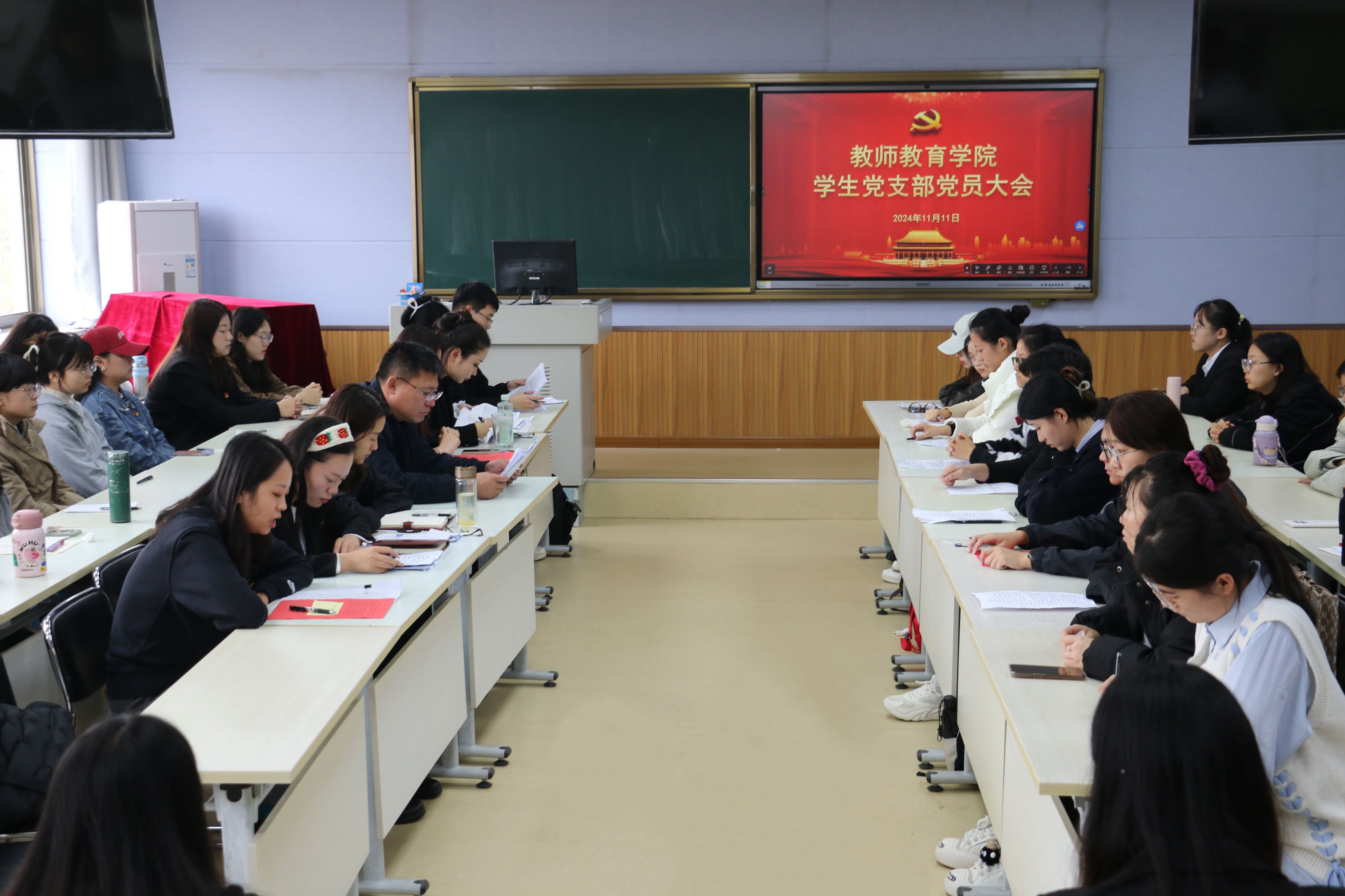11月11日,365英国上市(集团)公司学生第一、第二党支部分别于2号楼C409、C410召开预备党员接收大会,学院党委书记刘勇、党委副书记杜鹃列席会议。会议由各党支部书记主持。