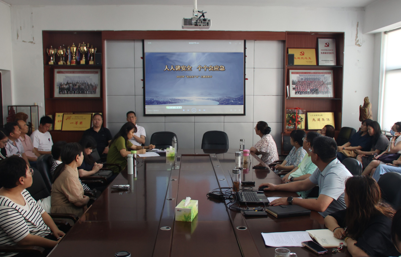会上,院长曹光海传达了全省教育系统安全生产排查整治专项行动启动部署会议精神,明确了当前安全工作面临的形势与重点任务,要求要全力以赴做好安全排查整治工作。副院长贾英侠传达了山东省《2025年“安全生产月”活动实施方案》,该方案强调了“人人讲安全、个个会应急—查找身边安全隐患”的主题,并要求持续培育安全文化,组织系列活动如“查找身边安全隐患”、“安全隐患排查行动”等,以提升从业人员安全生产意识。同时,党委副书记杜鹃领学了《山东省学校安全条例》及其实施细则,以确保学校安全工作的责任到人、工作到位。集中观看了2025年“安全生产月”主题教育宣传片。