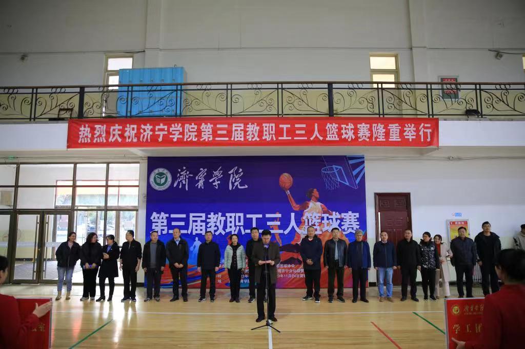 11月13日下午,由校工会主办、体育学院和教职工篮球协会承办的济宁学院第三届教职工三人篮球赛在学校篮球馆开赛。校党委副书记、校长王清明,党委委员、副校长尹春光,党委委员,副校长赵明出席开幕式。开幕式由赵明主持。