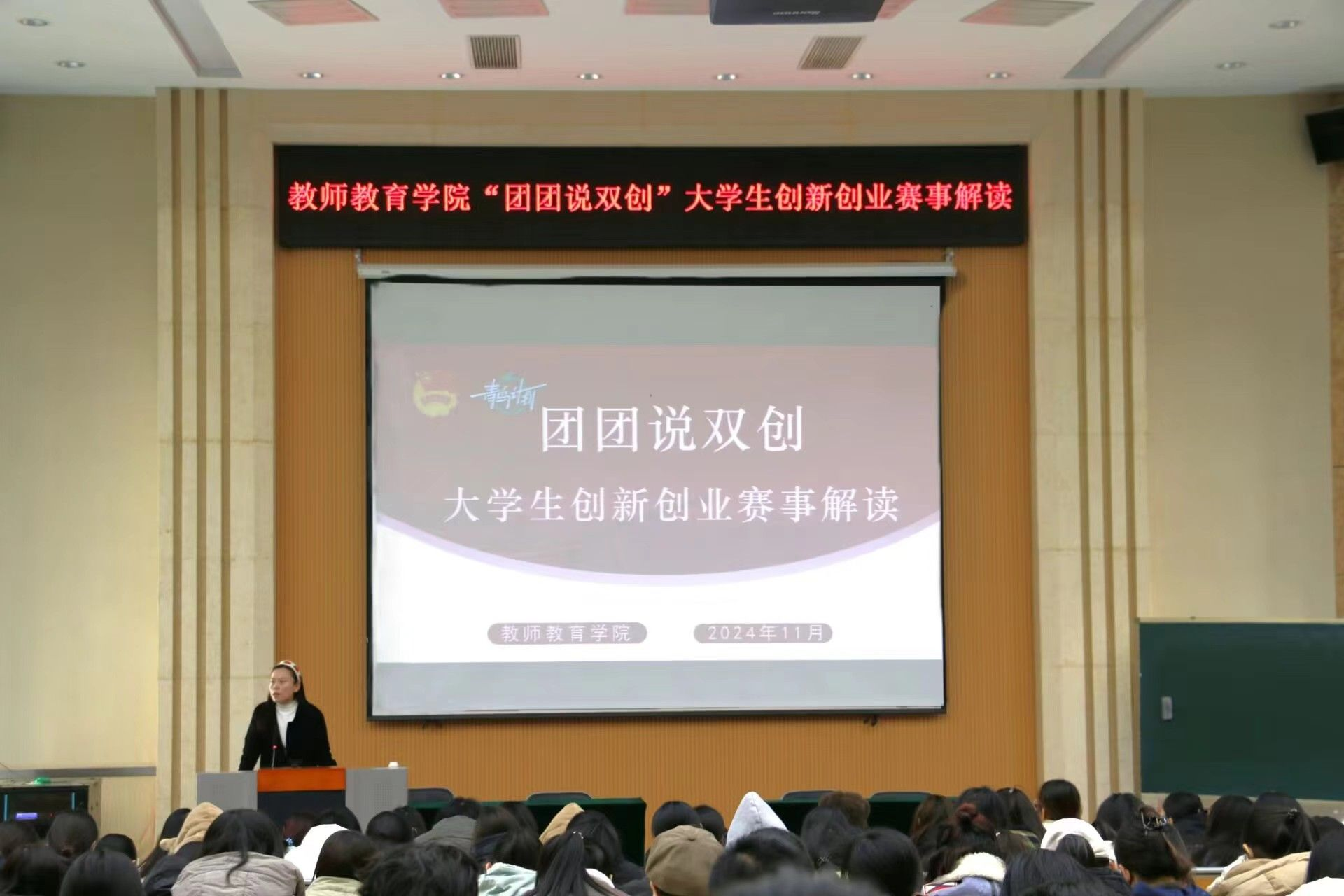 为进一步激发学生参加创新创业赛事的积极性,切实提升双创育人实效,11月28日下午,365英国上市(集团)公司在8号楼报告厅举办“团团说双创”宣讲会。本次活动由该院团委书记徐艳艳主讲,2024级全体学生参加。