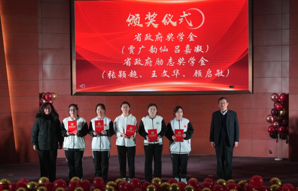 (刘克非部长、张静书记为省政府奖学金、省政府励志奖学金获得者颁奖)