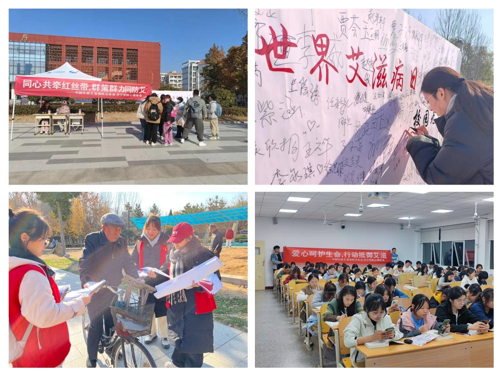 无“艾”校园,志愿同行。学院心理协会联合医务人员和志愿者,采取“校内+校外”相结合的方式,开展了“人人知艾,人人避艾,人人防艾,人人无艾”为主题的艾滋病防治知识宣传志愿服务活动,并通过发放宣传资料、防艾倡议签名、问卷调查、骑行宣传等形式向广大师生普及艾滋病、性病致病原因、传播途径、临床表现和危害。