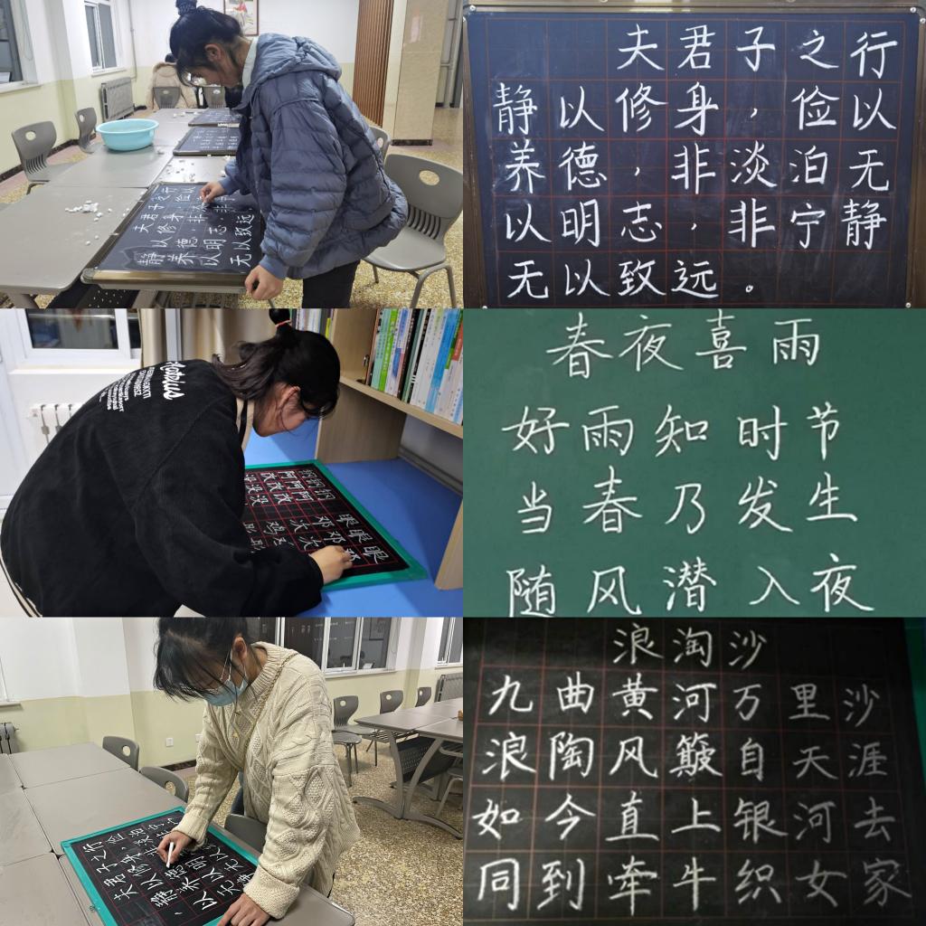 为积极响应学校疫情防控期间的相关规定,此次活动采取线上比赛的形式,选手根据要求提交书写全过程视频。比赛过程中,参赛选手认真书写,一丝不苟,尽情地挥洒手中的粉笔。笔画或方或圆、或粗或细,或顿挫有致、或苍劲有力,在学生的书写中,我们感受到了汉字独特的的笔画、结构和章法之美,同时也展现了学生自身过硬的专业素养。经过专业评委评选,代文静、韩欣航等6同学获得一等奖;李晨朔、张诺等10同学获得二等奖;邵晓凤、张家琪等12同学获得三等奖。