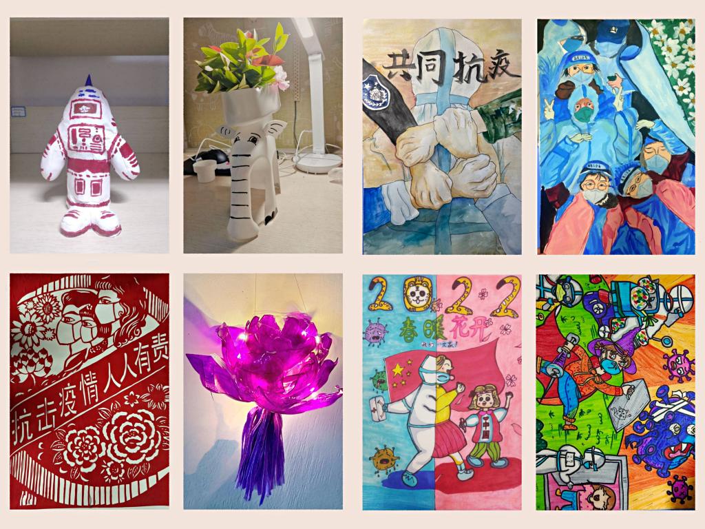 活动采取学院-班级-宿舍联动的方式开展,共分为“ 携手共渡,同心抗疫”主题绘画、“剪疫共情,纸短情长”主题剪纸、“发散思维,变废为宝”手工制作三大模块。自活动开展以来,各年级学生积极参与,充分利用现有资源,结合自身专业特色进行主题创作,上报作品内容丰富、形式多样、创意十足,其中“春暖花开,静等疫散”“携手共渡,同心抗疫”“抗击疫情,人人有责”“可爱的宇航员”等作品受到师生一众好评。