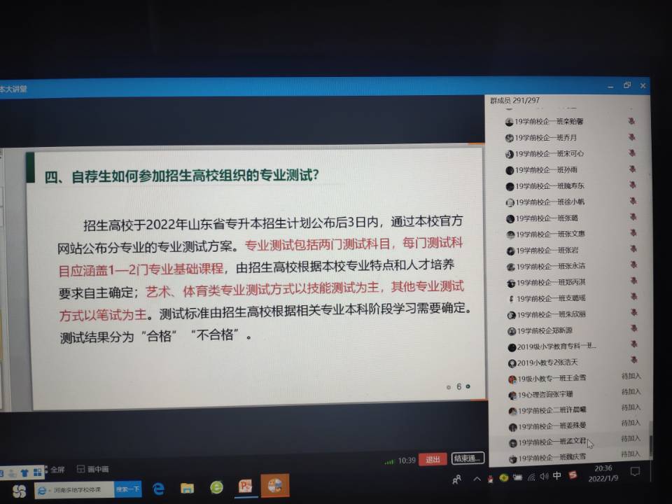 为使同学们更好地了解2022年专升本政策,做好学生服务工作,365英国上市(集团)公司于2022年1月9日晚上开展了2022年专升本招生政策线上宣讲会,我院副院长曹光海及2019级专科全体学生参加。宣讲会由辅导员赵国丽主持