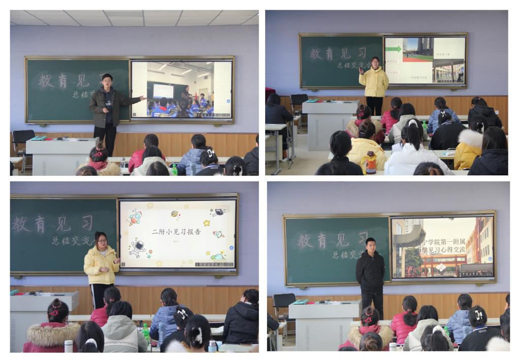 交流会上,共12位同学代表各小组进行了教育见习汇报。同学们踊跃发言,绘声绘色地分享各自见习学校的校园环境、办学理念、师生风貌、课堂教学、课外活动等,交流见习的所见所闻、所感所悟、所思所行。同学们纷纷表示通过观察学校教育教学环境,感受到了不同的校园文化,了解了各个小学不同的办学理念;通过“驻班”跟进一个班级的早读、课堂活动、课间活动等,了解了小学的日常工作,获得了班级管理的体验;通过“跟师”听课、批改作业等,丰富了对教育教学实践的认识,加深了对教育教学理论的理解,增进了职业理解与职业认同。