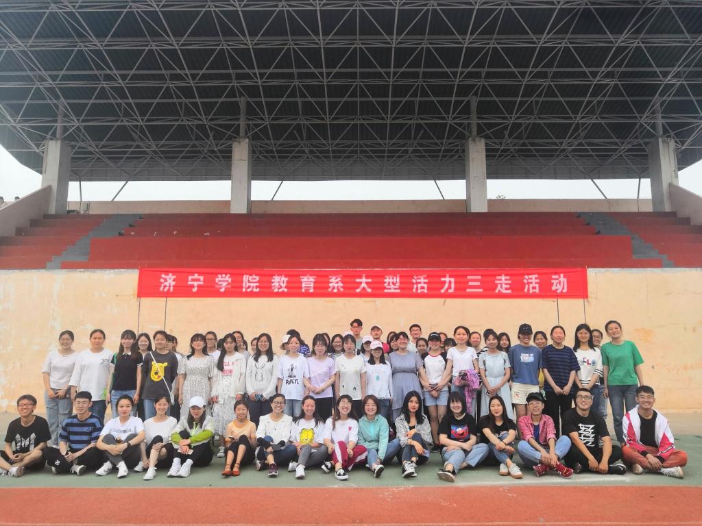 5月19日下午,教育系在东操场举办“走出宿舍,健康成长”活动。2018级全体同学、学生会全体成员参加本次活动。 首先,以班级为单位进行了你做我猜、撕名牌等团体游戏,同学们热情高涨,积极参与游戏,充分展示了当代青年积极向上、乐观进取的精神。每轮游戏结束后,小组内都会进行一次交流,探讨在游戏中的得失。在活动过程中,同学们用汗水、欢笑、团结诠释了运动的含义。最后,大家还按专业进行了原地转、跳绳、短跑接力比赛。