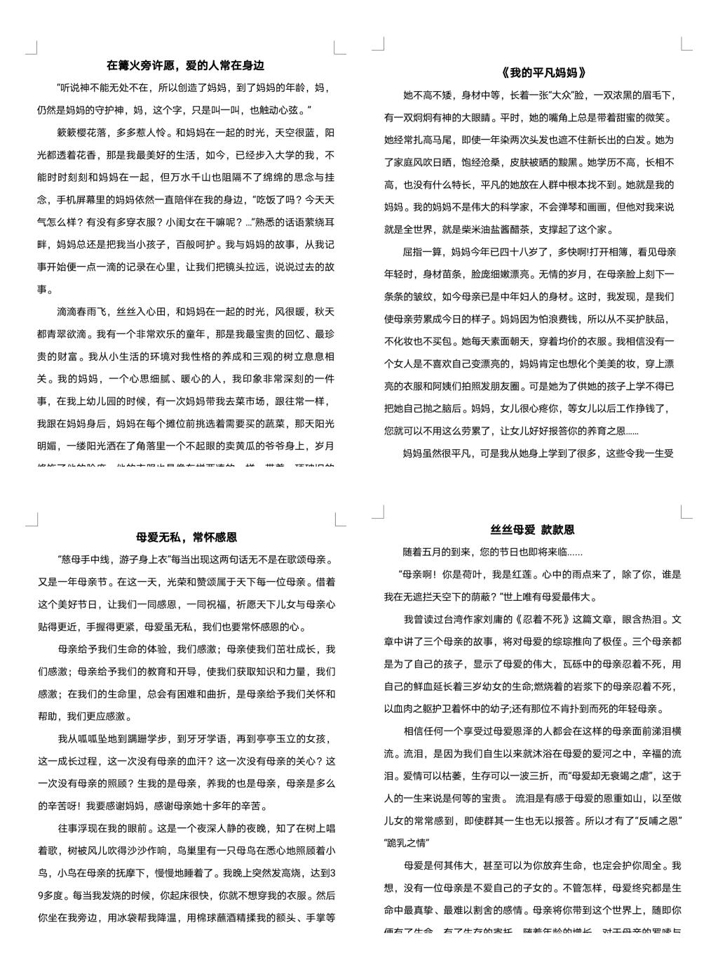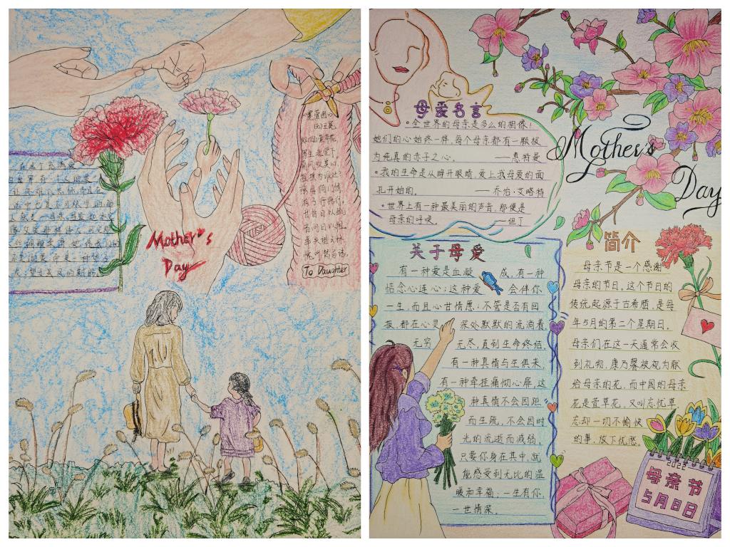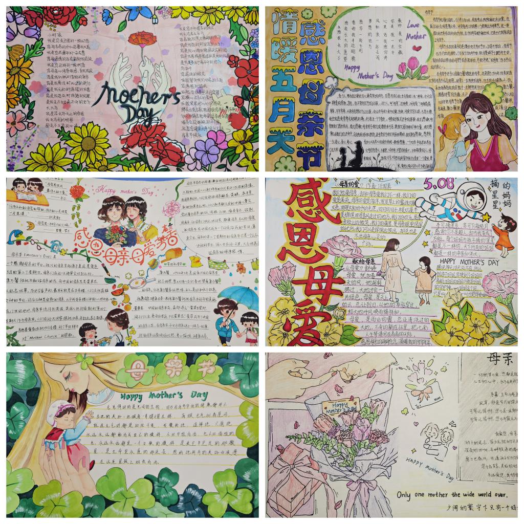 此次主题活动包括手抄报绘制和征文写作两部分,以线上和线下相结合的方式举行。参加手抄报绘制的选手严格遵守参赛要求,对版面进行合理排版,用手中的画笔绘制出一幅幅色彩丰富、图文并茂的作品,抒发了对母亲的爱恋与思念之情。征文作品中,同学们文字表达自然生动,结构紧凑,中心突出,字里行间中展现出了对母爱的赞美。目前参赛作品已收集完毕,将由专业评委老师进行打分。