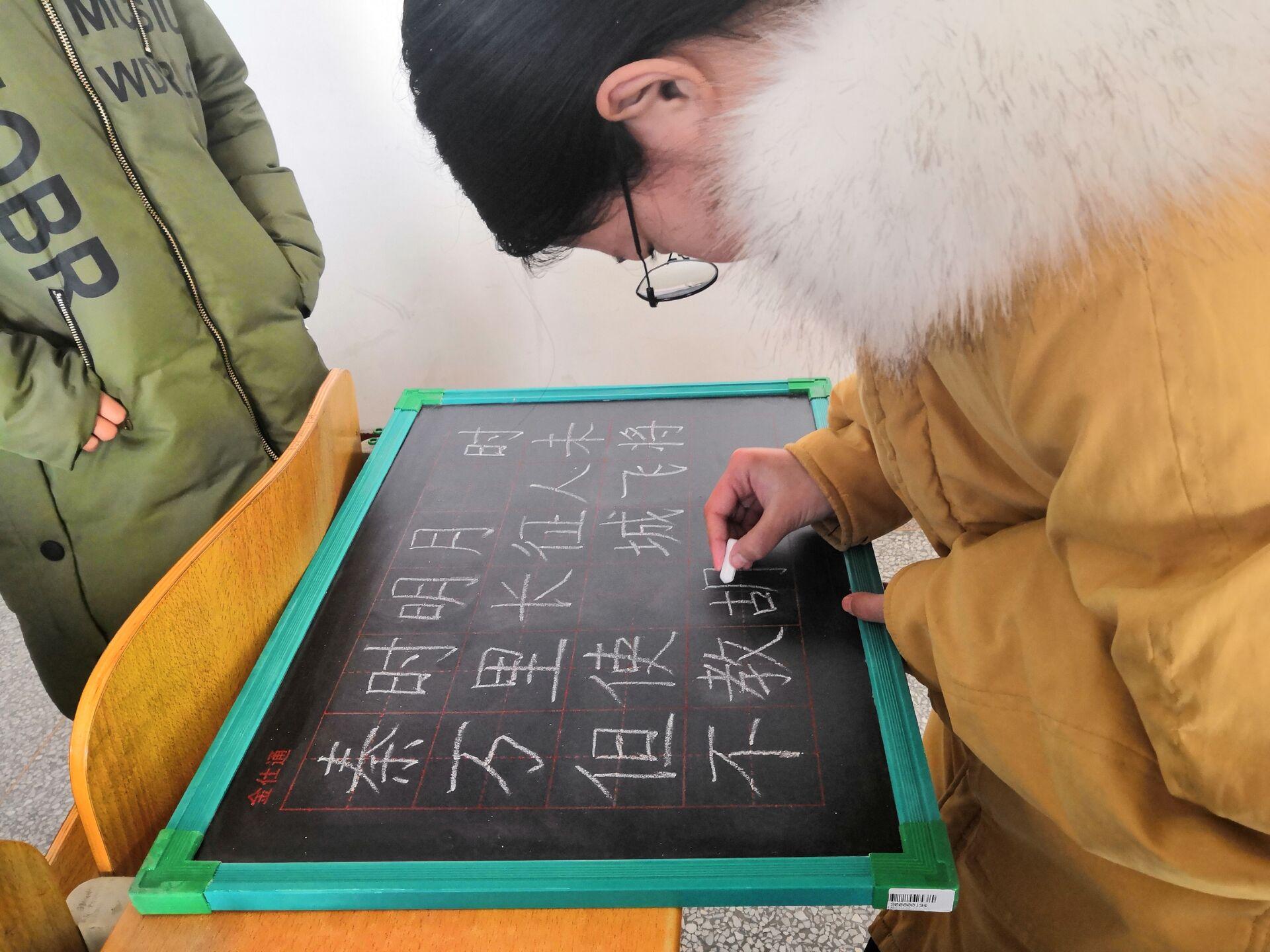决赛采用小黑板书写的形式,板书内容选自中华经典诗词歌赋,书写时间限制在五分钟。选手完成作品后,将作品进行统一展览,并由老师评奖。最终,潘蔷聿同学、崔佳同学获得比赛第一名。比赛结束后,评委们对参赛者的表现予以肯定,鼓励同学们持之以恒,努力练好粉笔字。