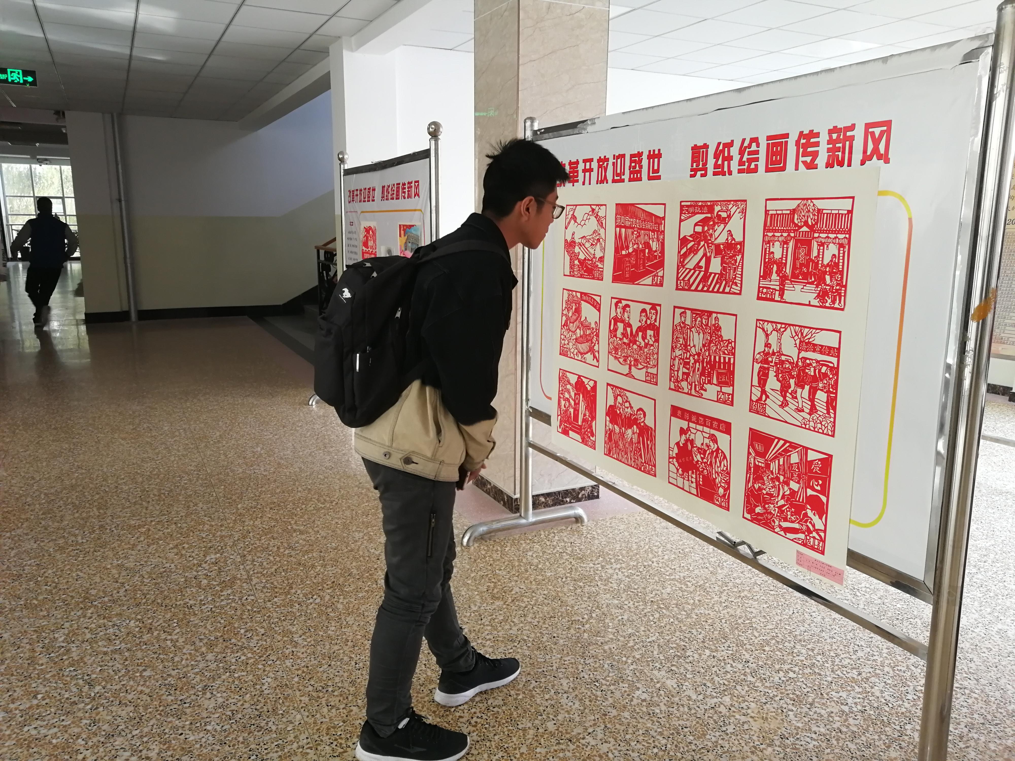 本次比赛的创作形式主要有剪纸和绘画两种形式。传承创新相得益彰,翰墨飘香意境深远。同学们用手中的画笔回忆过去的峥嵘岁月,用剪纸裁出了改革征程的新时代。优秀作品在教育系二楼展示,一幅幅惟妙惟肖的剪纸、一张张构思巧妙的绘画,吸引了众多老师同学前来观看。