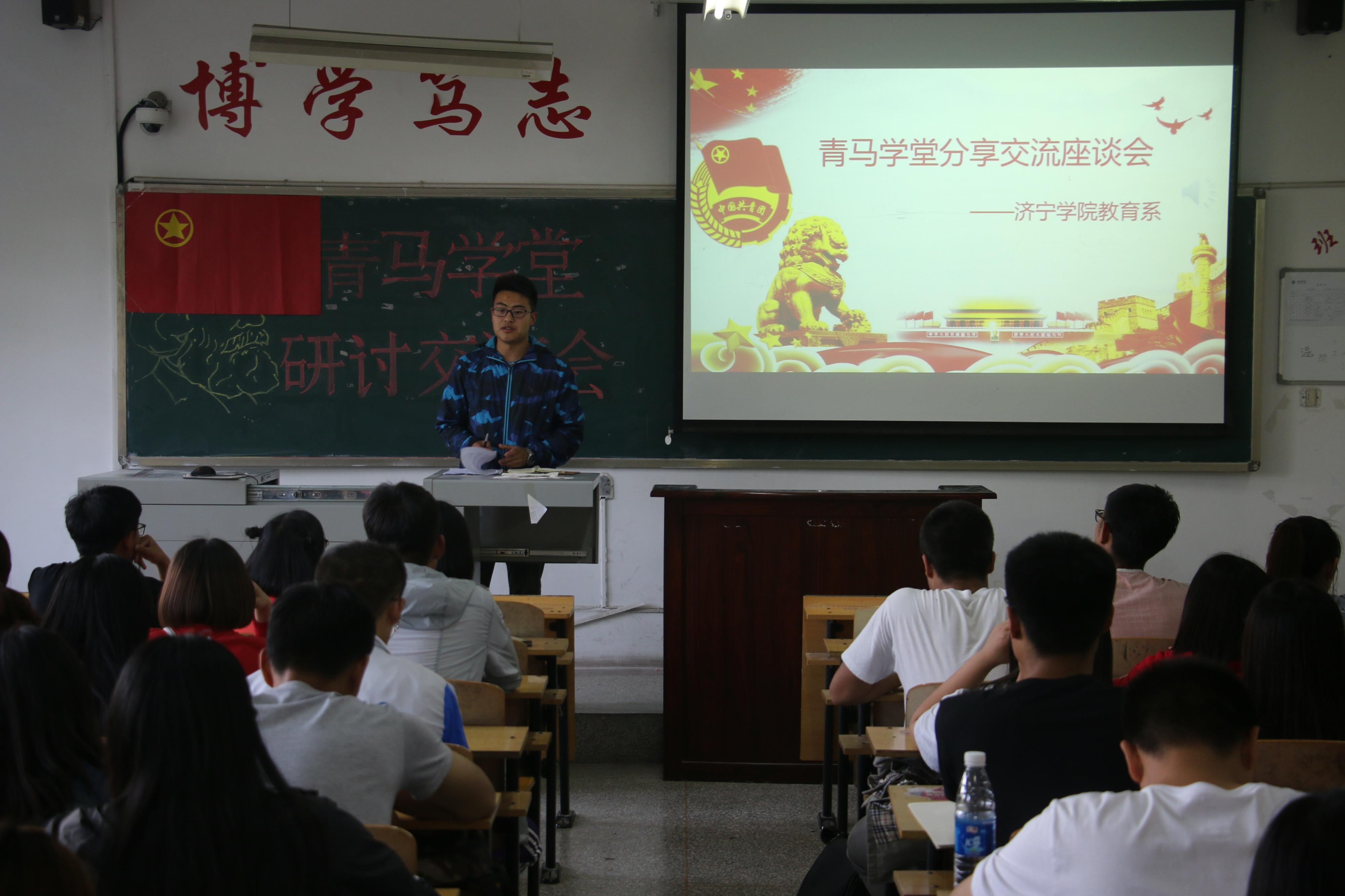 2018年5月23日下午6时,教育系青马学堂分享交流座谈会于教育系A310举行。系学生会主席颜博主持,2017级全体班委参加。