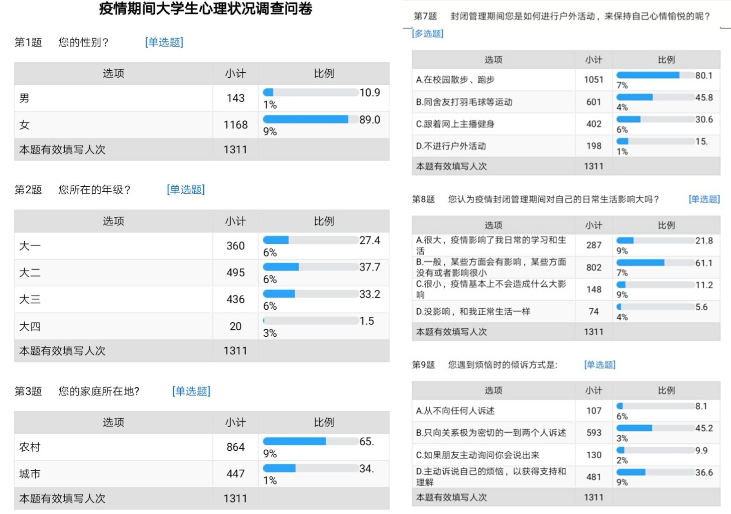 为了解我院大学生疫情防控期间心理健康状况,更好地引导学生客观理性看待当前疫情形势,做好个人防护和心理保健,于2022年3月29日--4月2日面向全院学生开展了以“与心灵相约,和健康同行”为主题的大学生心理健康状况调查。