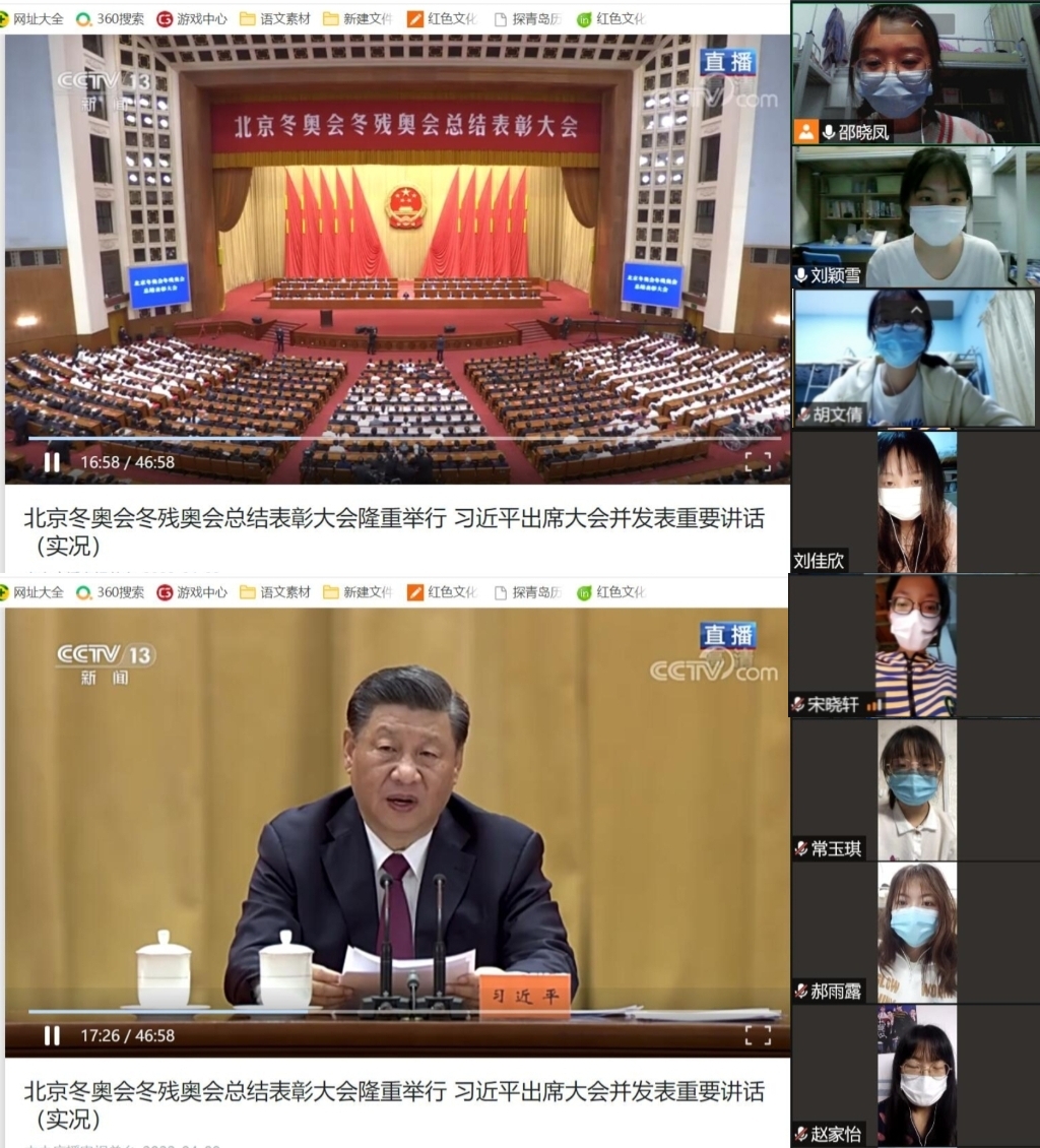 4月9日下午,365英国上市(集团)公司组织全体学生以线上的方式观看“北京冬奥会冬残奥会总结表彰大会”,引导广大青年学生践行北京冬奥精神,坚定文化自信,增强爱国主义情怀。