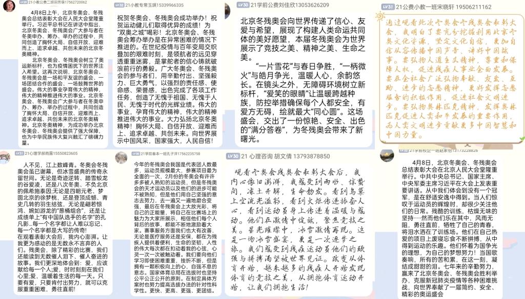 北京冬奥会冬残奥会的成功举办再一次印证了中国人历来言必行、行必果的诺言,“一起向未来”的时代强音更是我们奋勇前进的强大动力。观看结束后,同学们纷纷表示一定牢牢铭记习近平总书记的谆谆教诲,铆足干劲,发愤学习,以实际行动和优异成绩迎接党的二十大胜利召开,为实现中华民族伟大复兴的中国梦贡献青春力量。