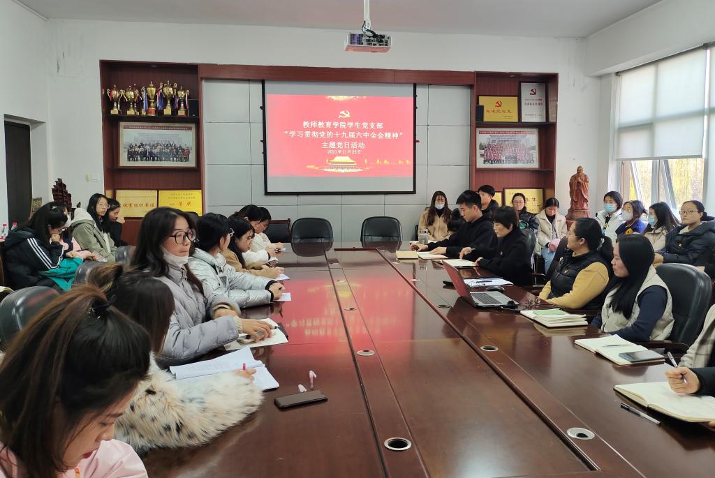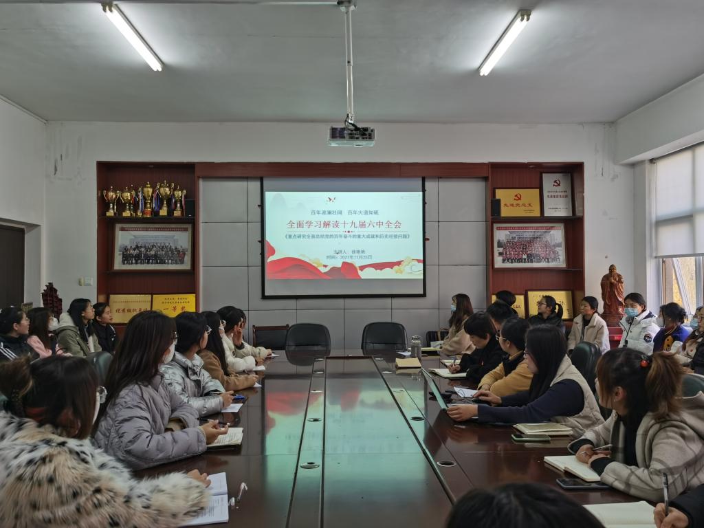 活动中,学生党支部组织委员徐艳艳以《全面学习解读十九届六中全会》为题作报告,带领大家学习了十九届六中全会的相关内容,讲解了党的百年奋斗重大成就和历史经验的重大意义。随后,教师代表赵国丽作典型发言,表示十九届六中全会是在我们党百年华诞的重要时刻,在“两个一百年”奋斗目标历史交汇关键节点上召开的一次重要会议,我们要深刻领会全会精神,从党的百年奋斗重大成就和历史经验中汲取智慧力量。学生党员代表黄艺炜表示:作为一名新时代青年党员,要认真学习领会十九届六中全会精神,不忘初心,牢记使命,接过前人手中的接力棒,立鸿鹄之志,昂扬进取,奋勇争先。