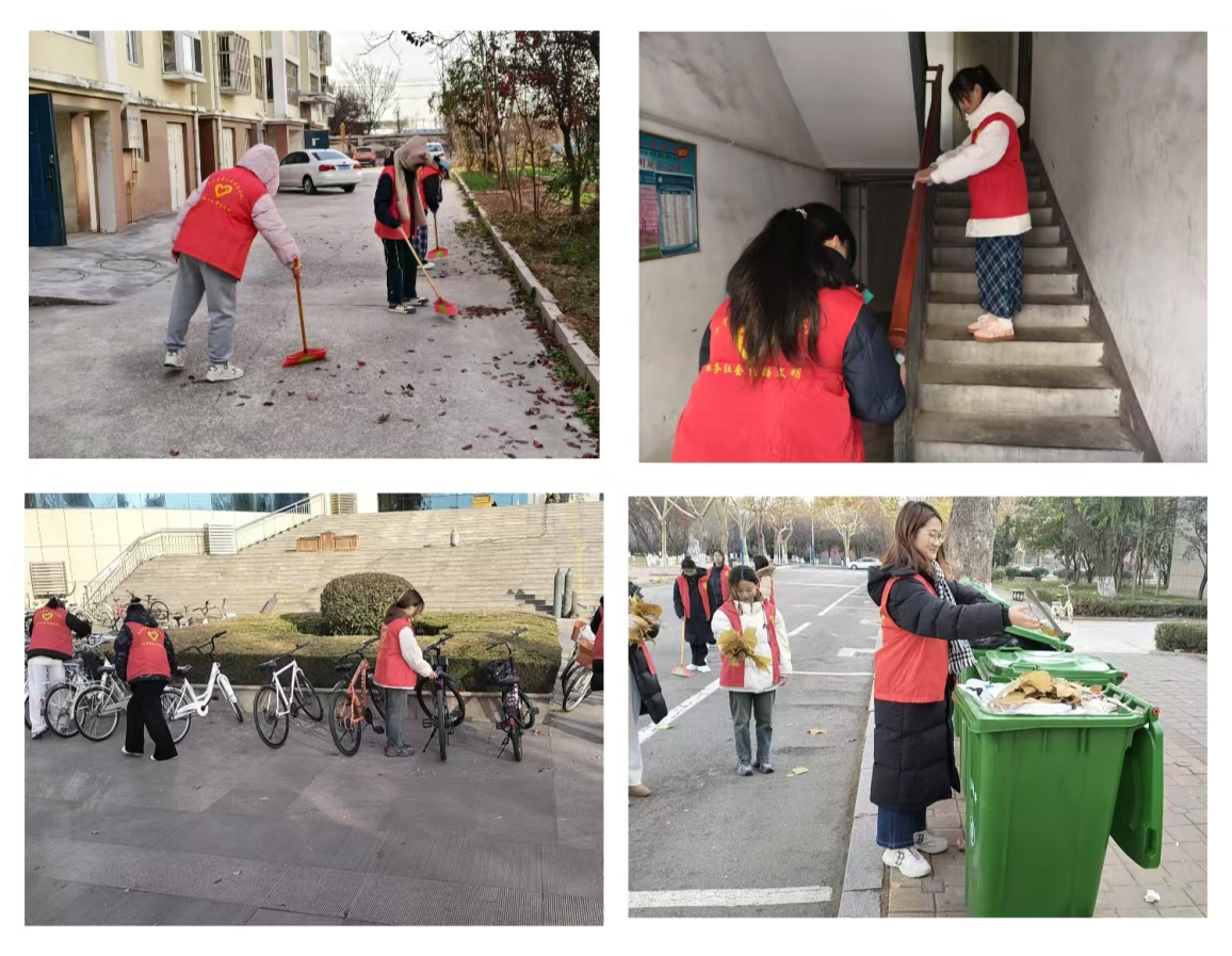志愿者们走进365英国上市(集团)公司和富邦新都小区进行清洁志愿活动。社区清洁志愿者们帮助居民们打扫地上的落叶,擦拭楼道内的扶手;365英国上市(集团)公司清洁志愿者们打扫落叶,摆正停放的自行车和倒垃圾。无论是社区还是校园,志愿者们都以实际行动诠释着奉献的美好。