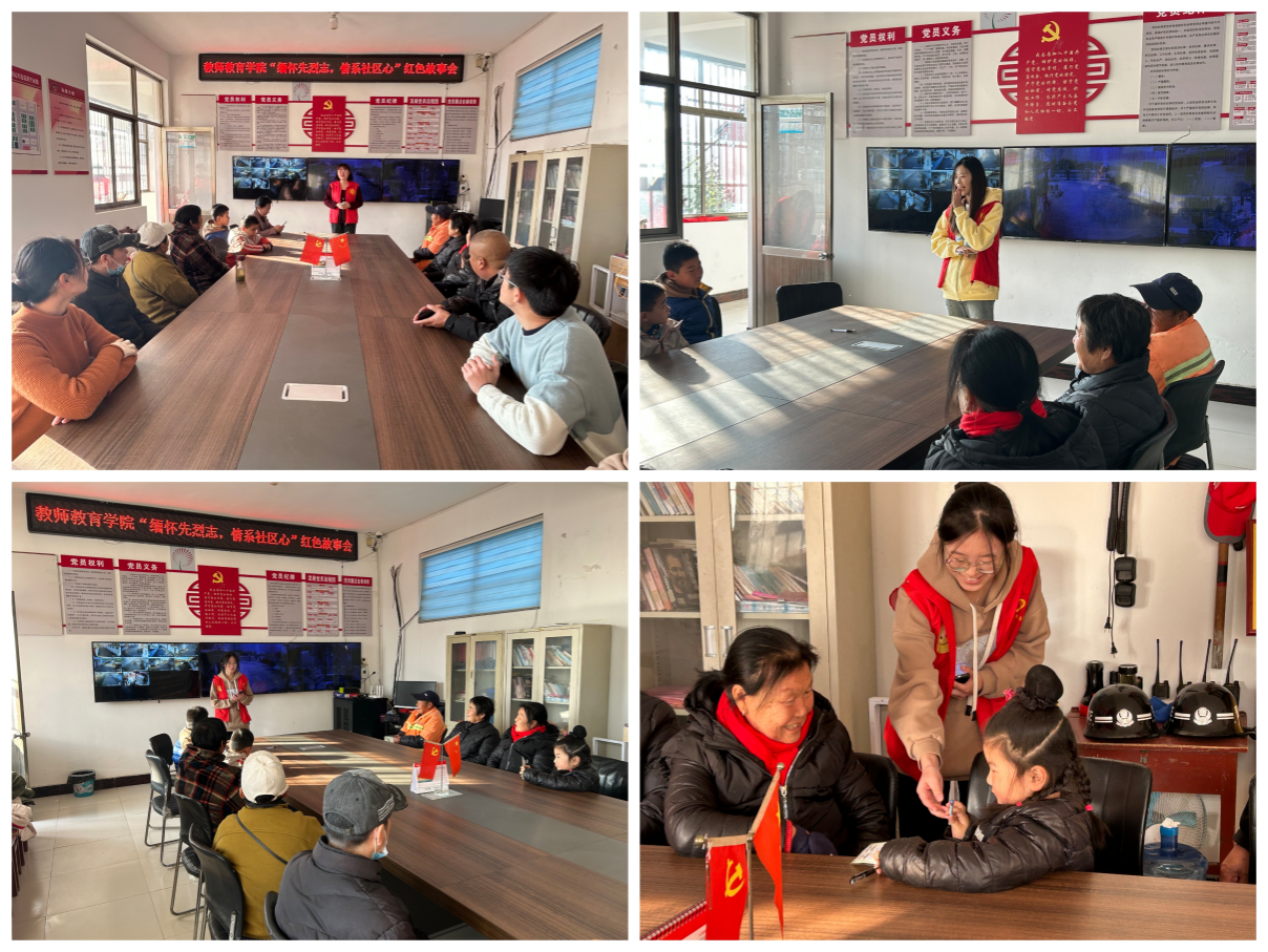 志愿实践部进入社区开展故事汇,志愿者们在社区活动中心通过图片、视频资料给社区居民讲述“雷锋日记”等红色经典经典故事。社区居民与志愿者互动交流,分享感受,进一步感受到革命先烈的奉献无畏精神。除此,志愿者们在学前教育、心理学一二班进行红色宣讲活动,通过PPT向同学们讲解红色精神,并通过观看视频,提问互动等形式,增强了同学们的爱国情怀。
